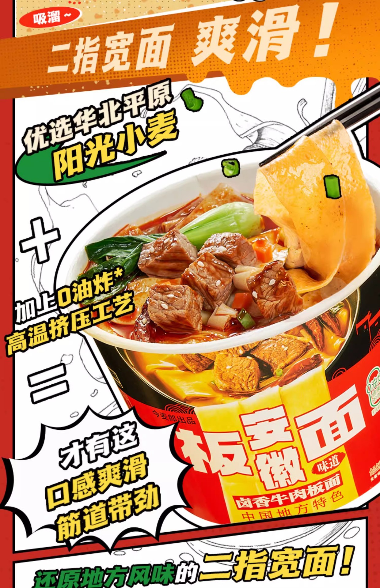 今麦郎板面袋装方便面多口味可选夜宵速食安徽牛肉板面宽面皮O