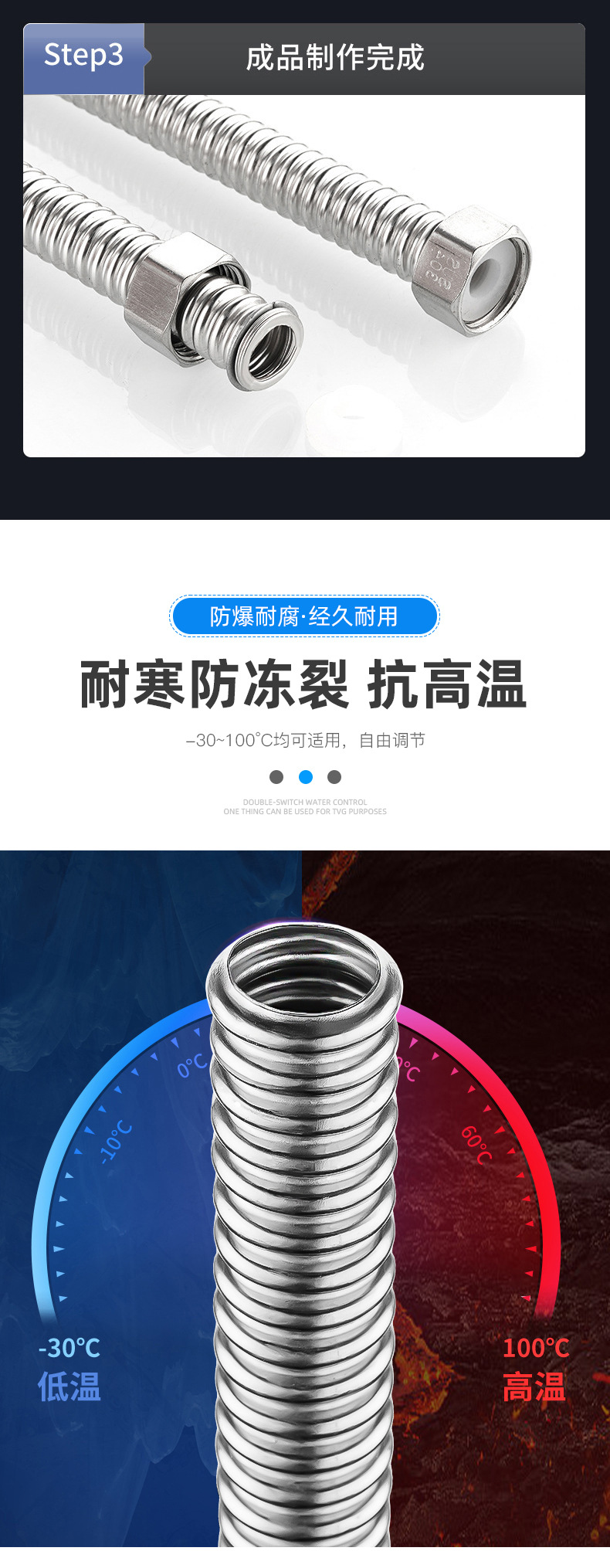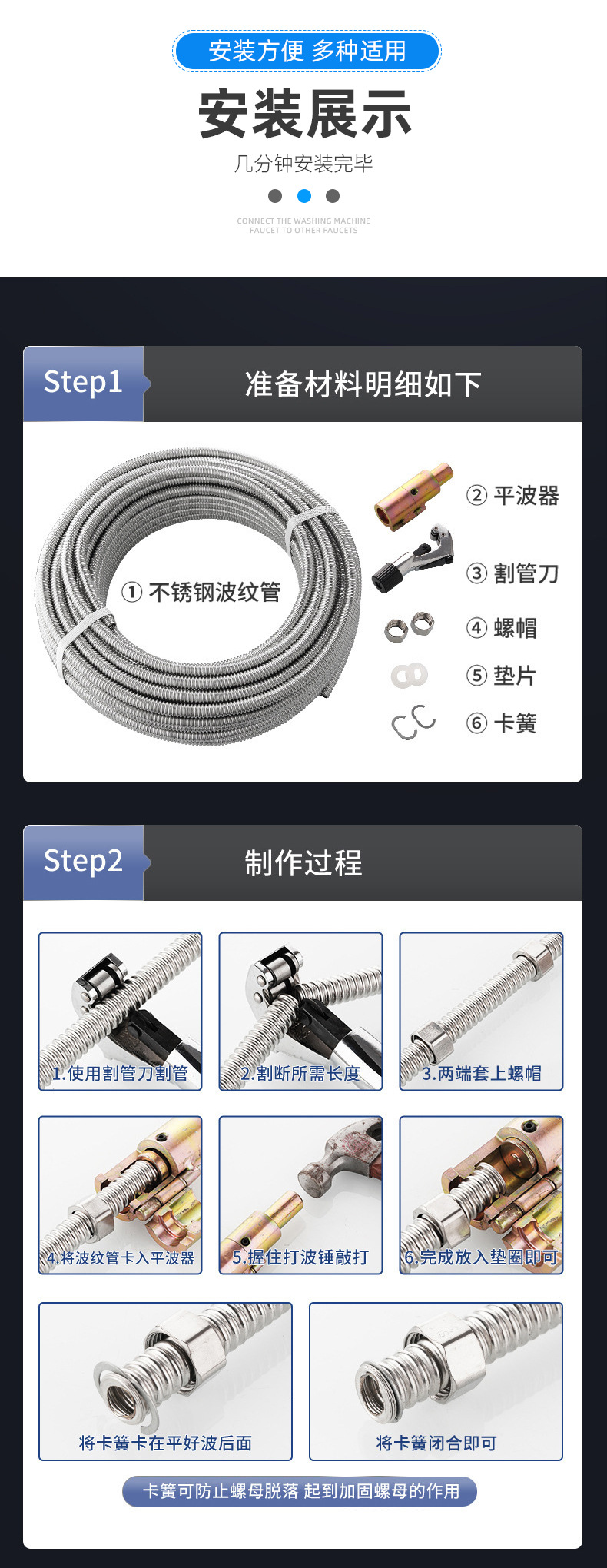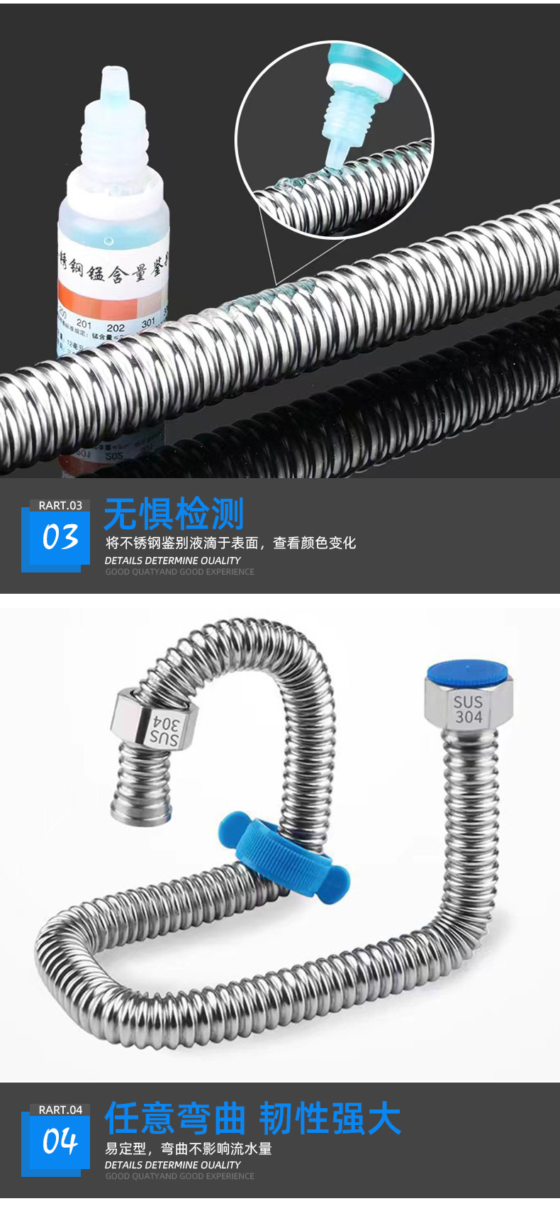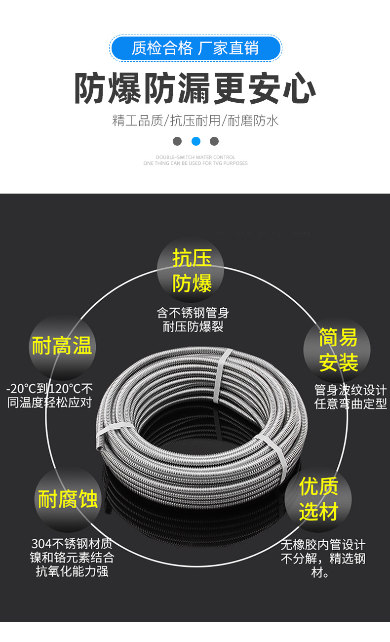 兴万盾304不锈钢波纹管/热水器冷热进出水管3/4/6分/1寸毛管防爆