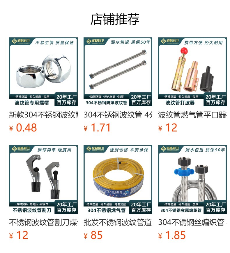 304不锈钢波纹管4分6分1寸燃气热水器金属进水软管毛管供应款
