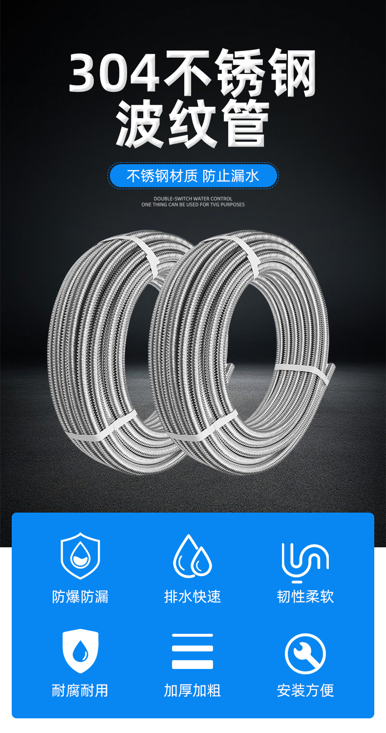 304ステンレス鋼波形管排水管316給湯器用厚肉水道管防爆4分6分耐凍金属軟管