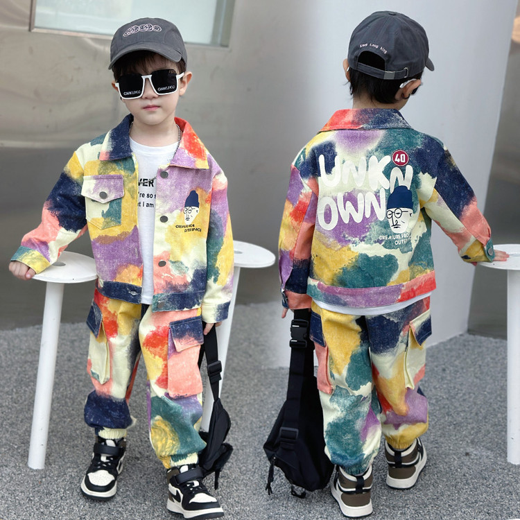 男児染めセット2025春秋服新型子供かっこいい工装2点セット子供用ファッション子供服クール