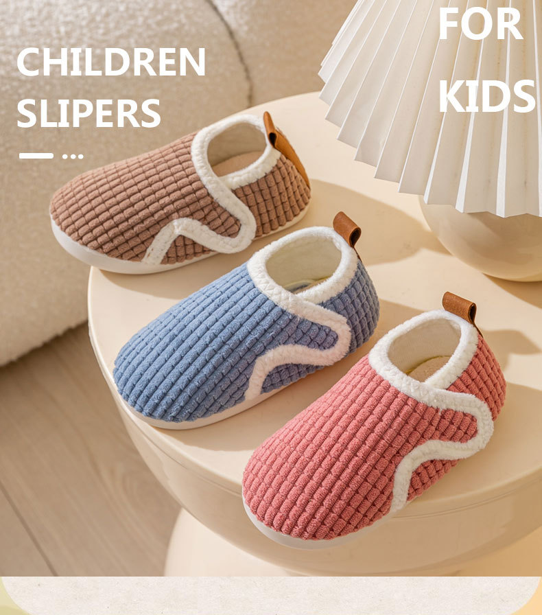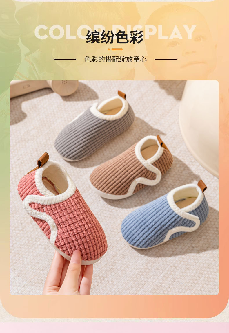 秋と冬の子供用綿スリッパプラスベルベット滑り止めソフトソール男性と女性の赤ちゃん幼児綿靴屋内早期教育靴下ソフト