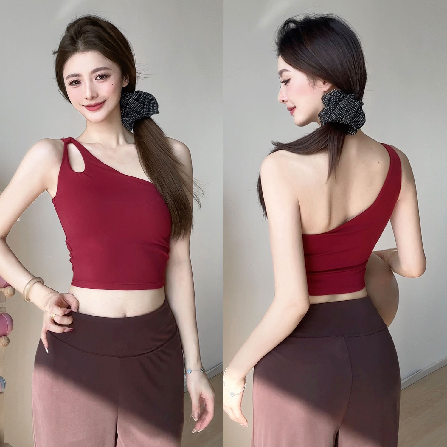 撞色百搭运动背心瑜伽背心裸感固定杯运动文胸防震外穿健身上衣女