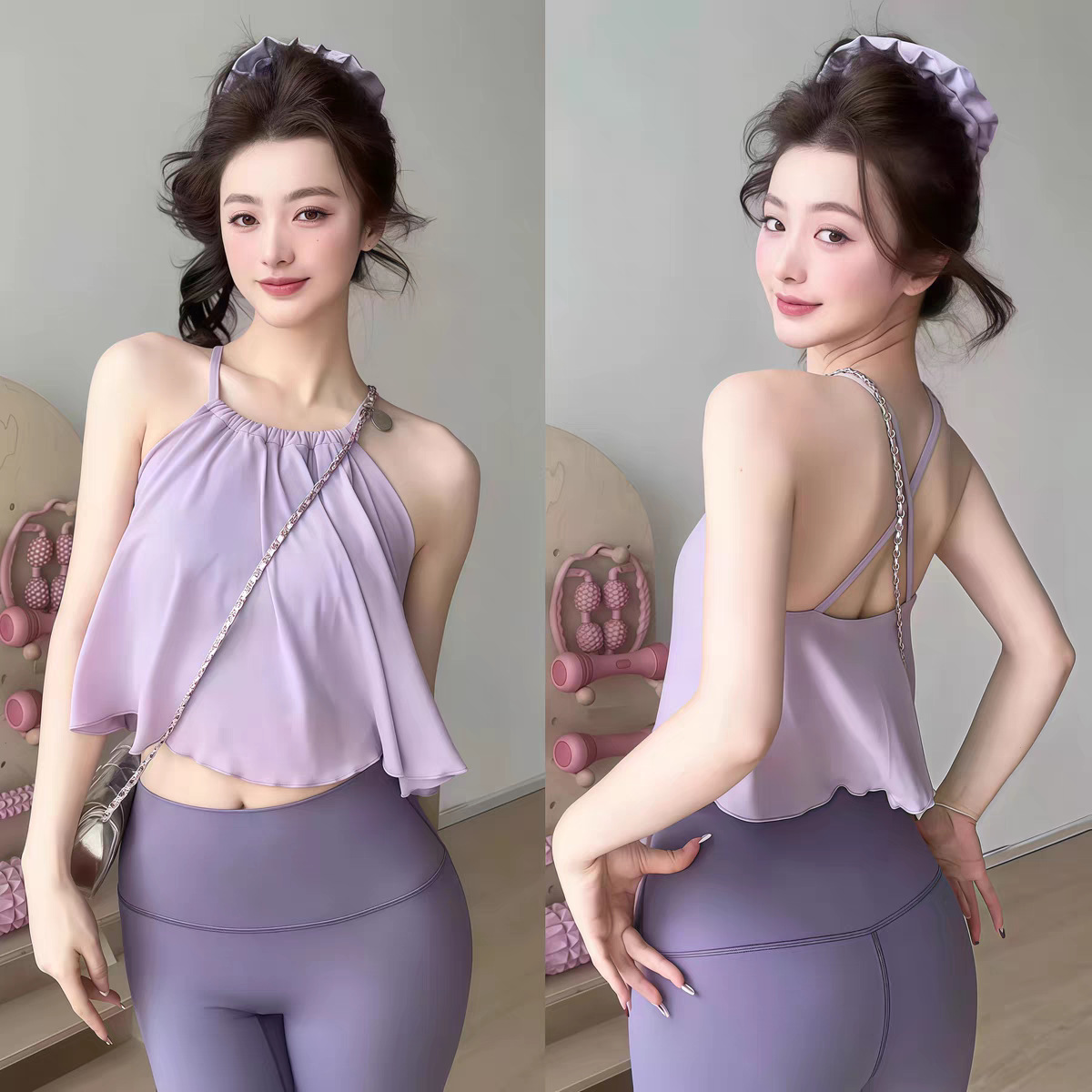 挂脖运动内衣美背固定杯瑜伽背心防震聚拢普拉提跑步文胸夏高颜值
