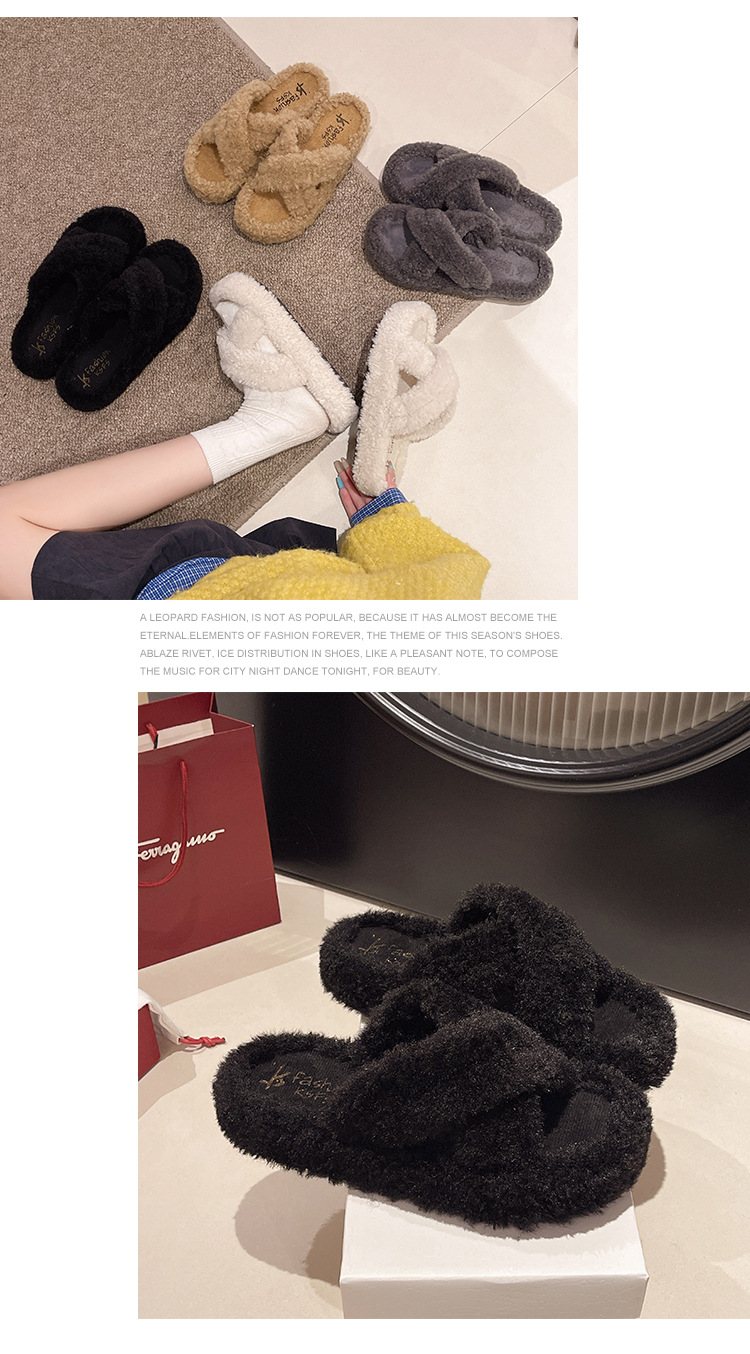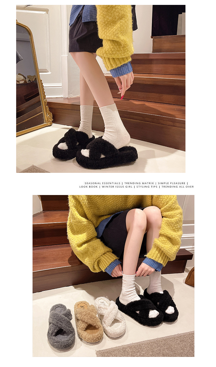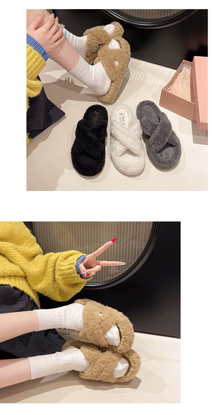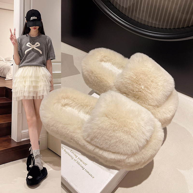 Xiaoxiangfeng インターネットセレブホームカジュアル毛皮のようなスリッパ女性の秋のアウターウェア 2025 新しいイントレンディな厚い底快適でファッショナブル