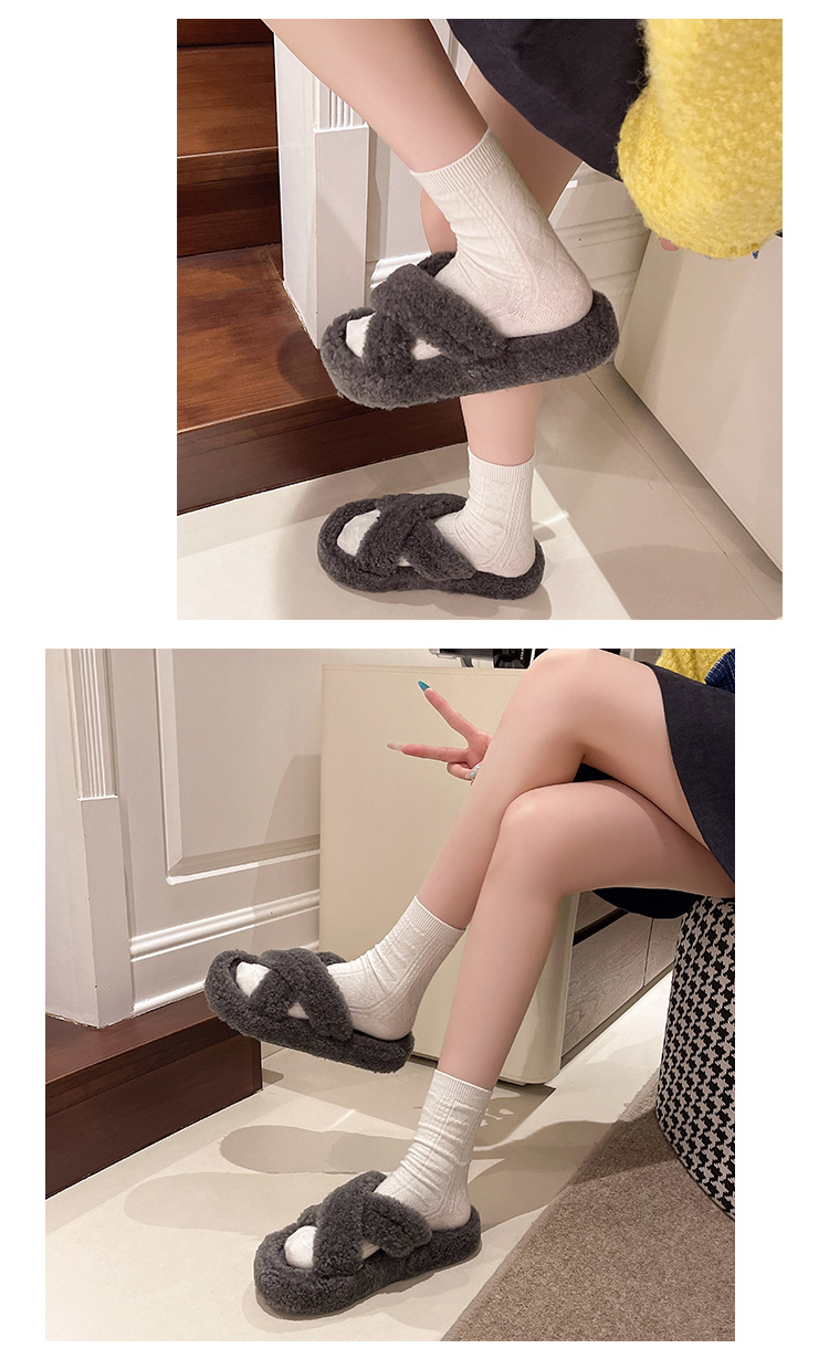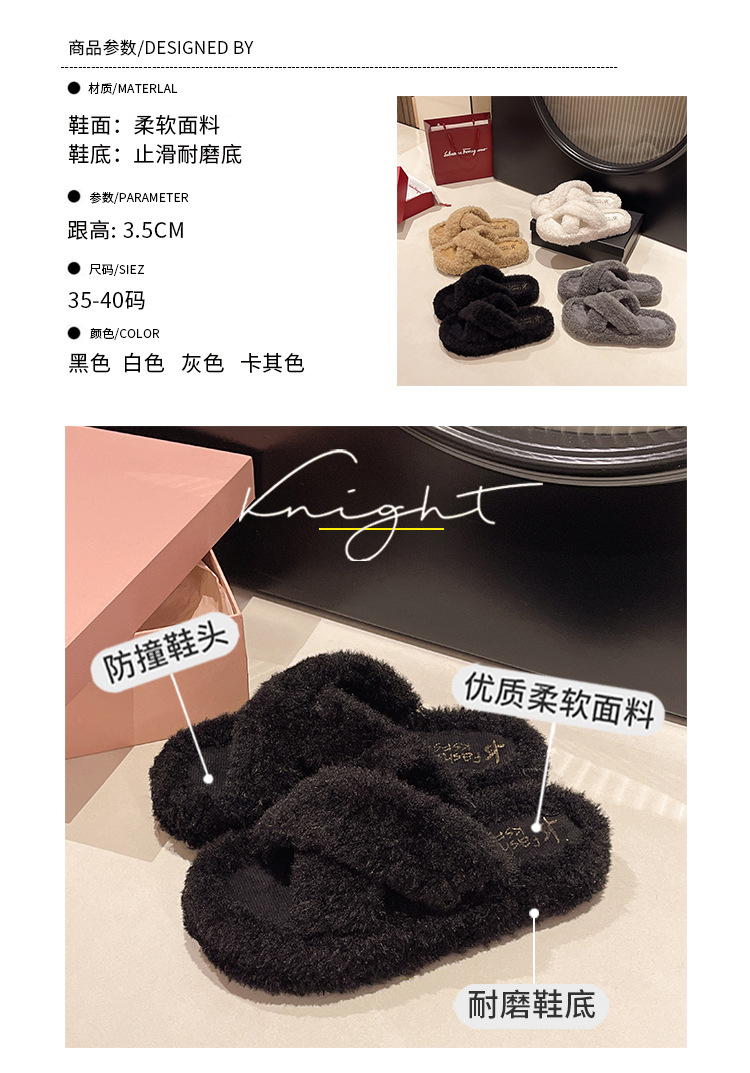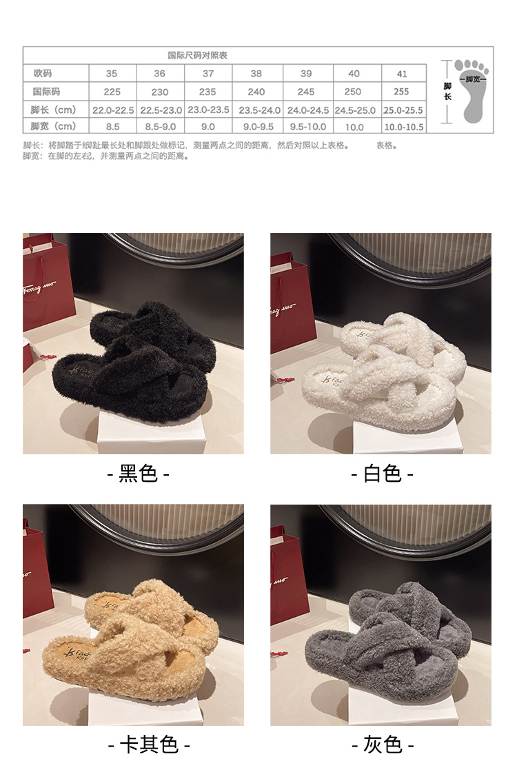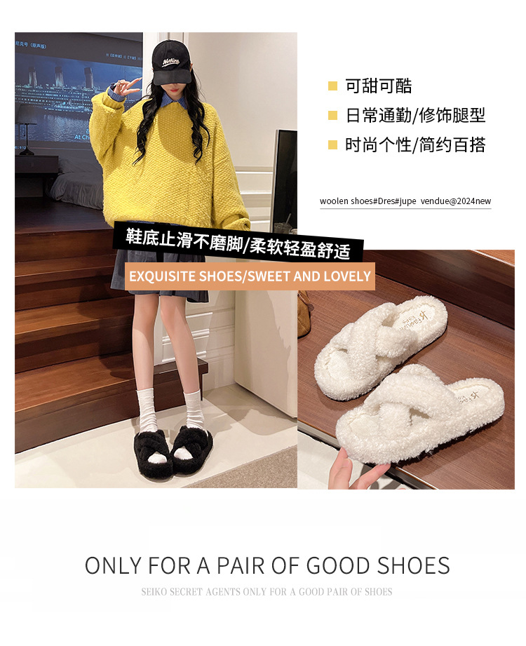 Xiaoxiangfeng インターネットセレブホームカジュアル毛皮のようなスリッパ女性の秋のアウターウェア 2025 新しいイントレンディな厚い底快適でファッショナブル