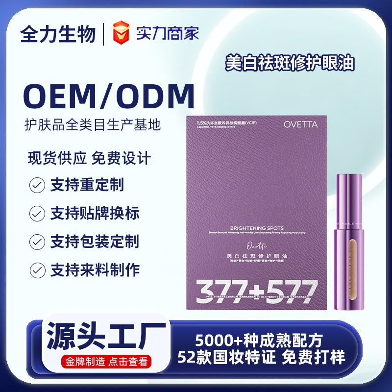 美白祛斑修护眼油淡纹紧致赋活眼部精华油黑眼圈抗皱精华液代加工