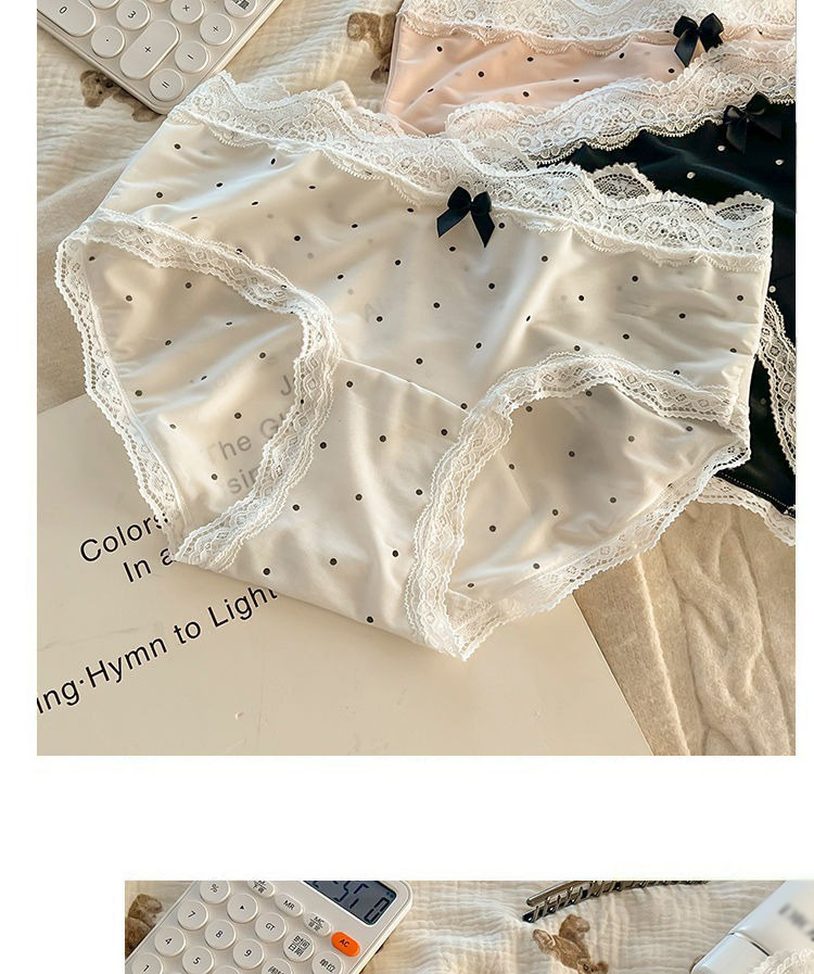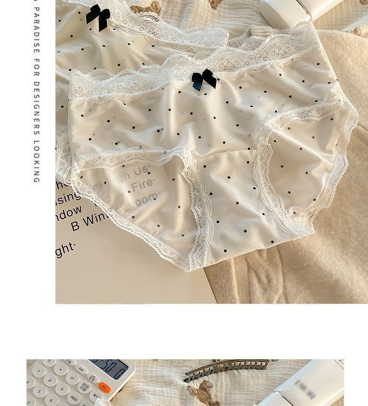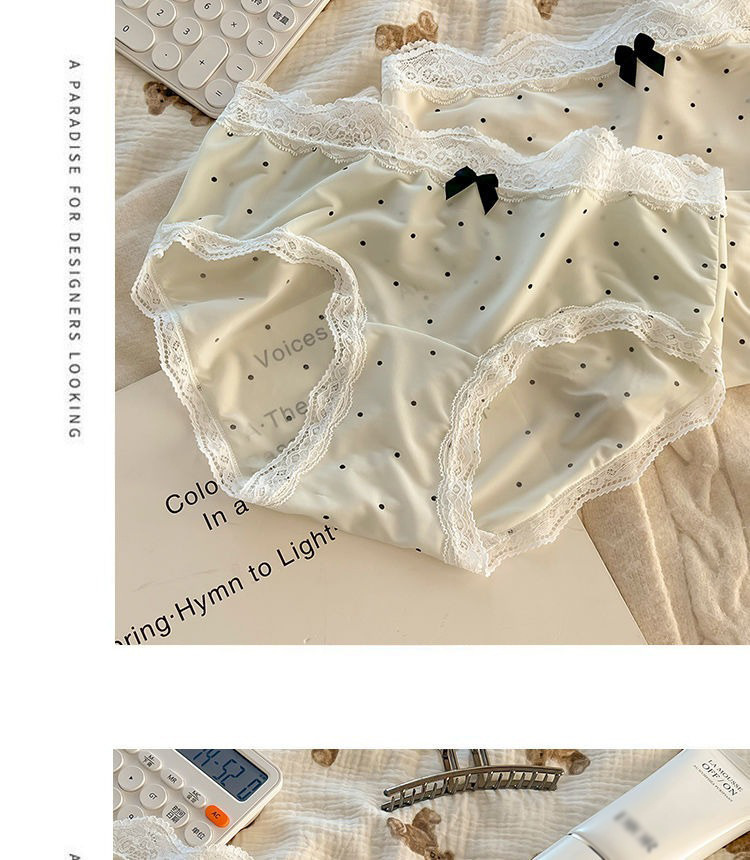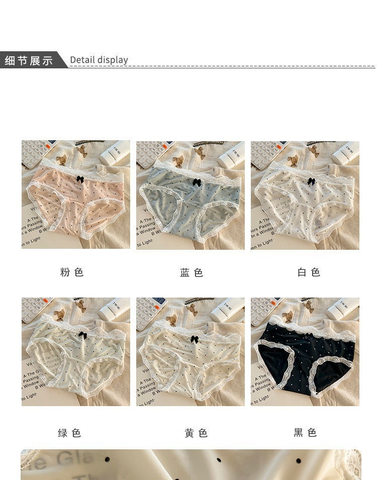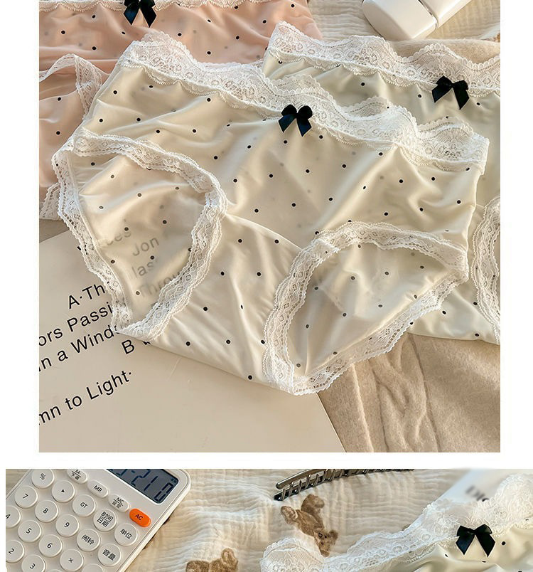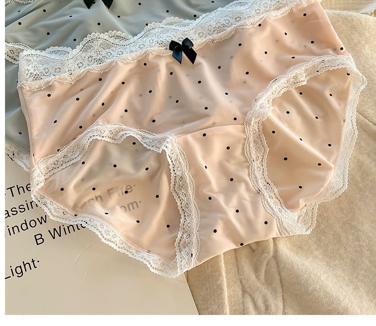 夏のアイスシルク下着女性のフレンチポルカドットレース女の子下着拡張インナー薄型通気性女性下着