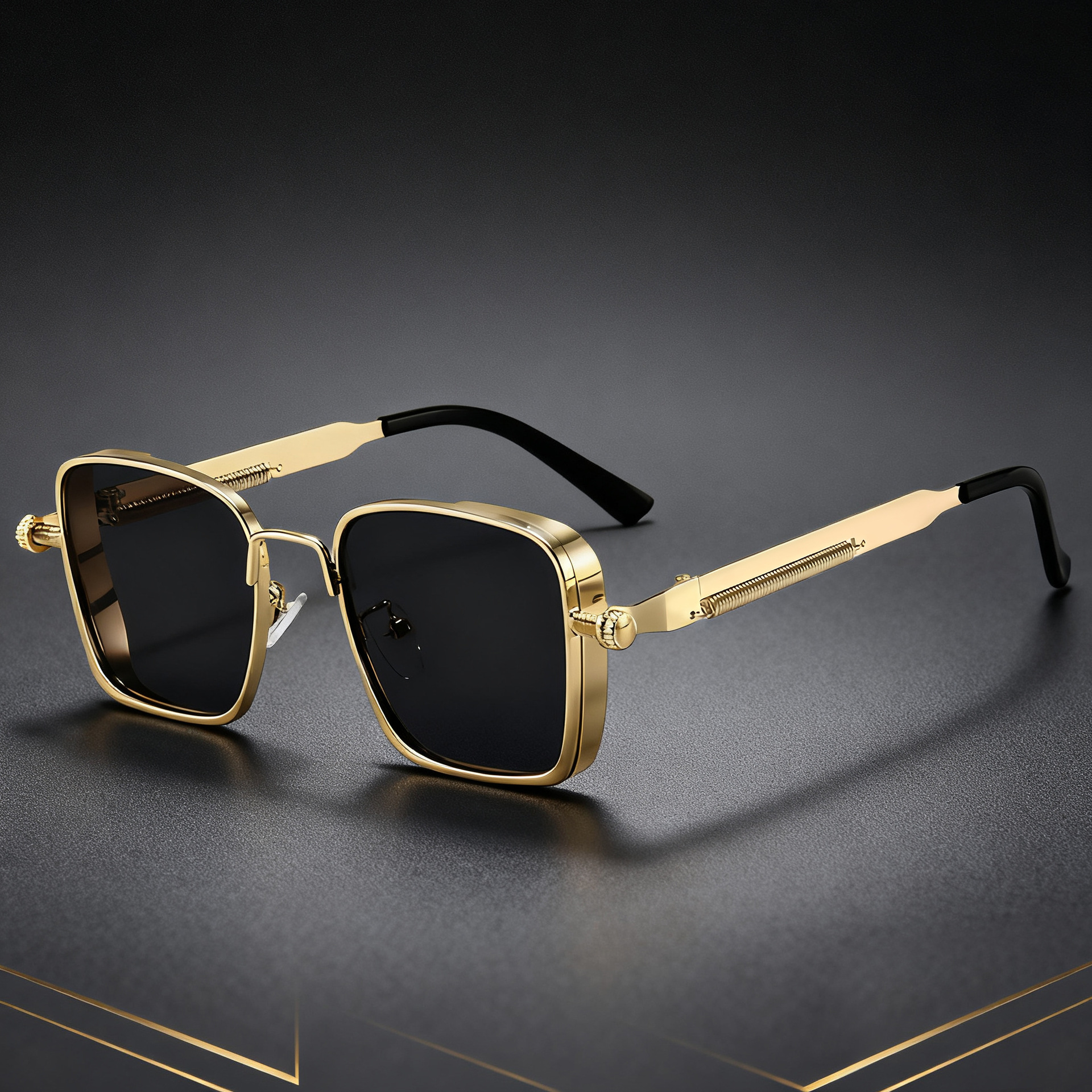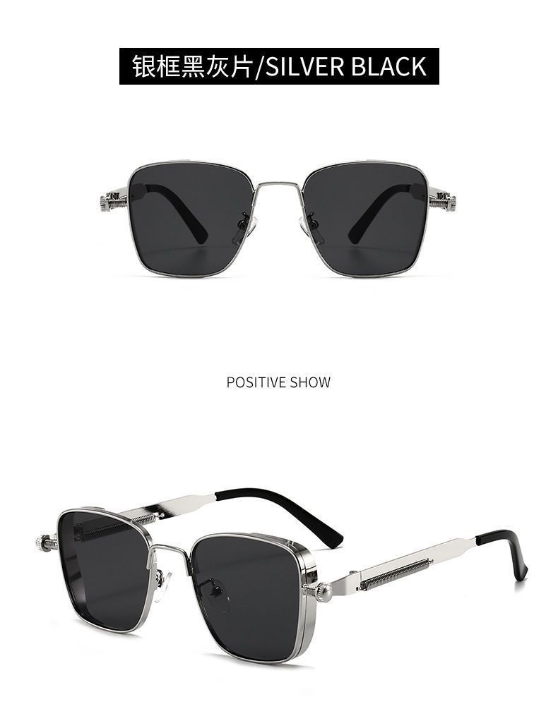 クロスボーダーメタルパンクスクエアフレームサングラス 欧米風トレンドファッションサングラス 男女兼用個性派ストリートスタイルUV400対応