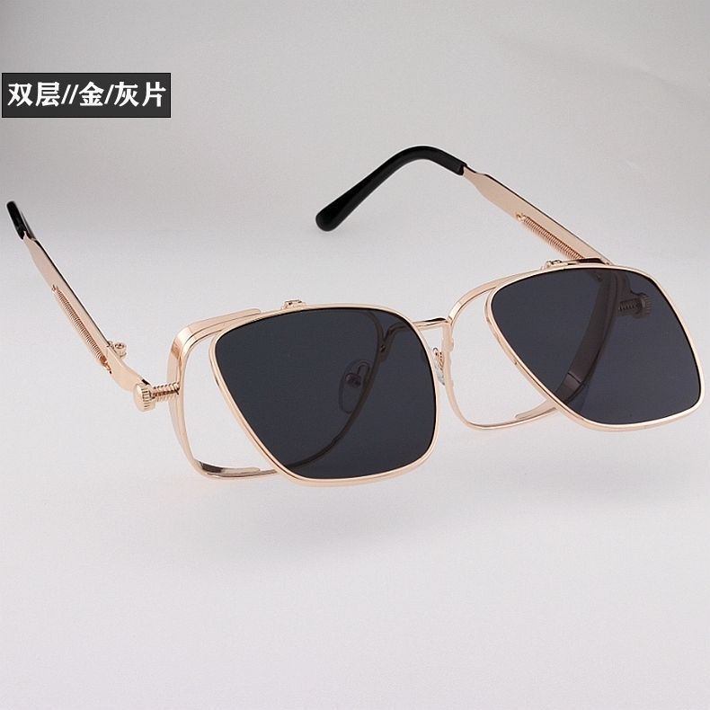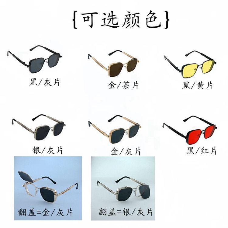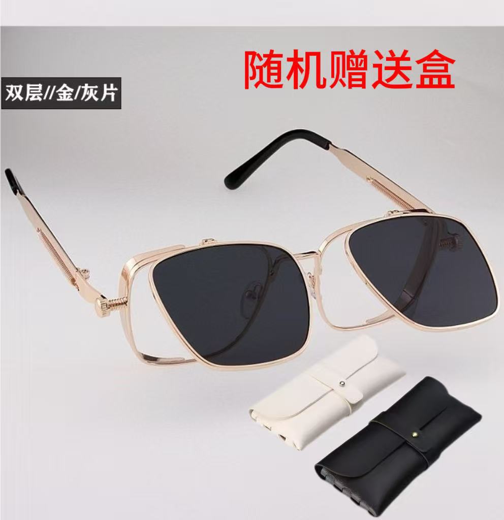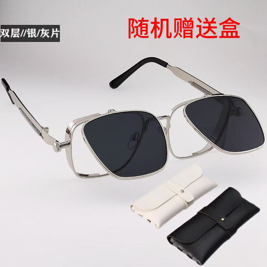新款方框太阳镜时尚复古蒸汽朋克金属墨镜镜跨境欧美个性高级墨镜