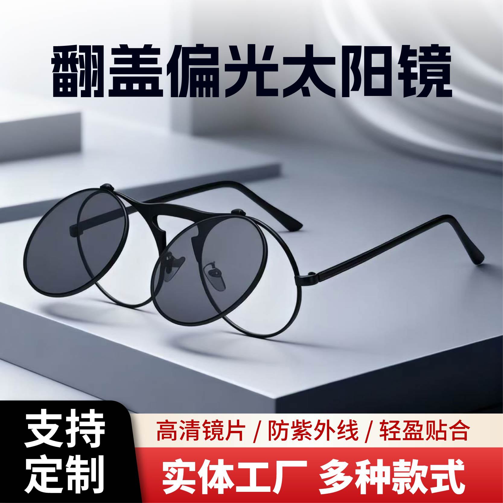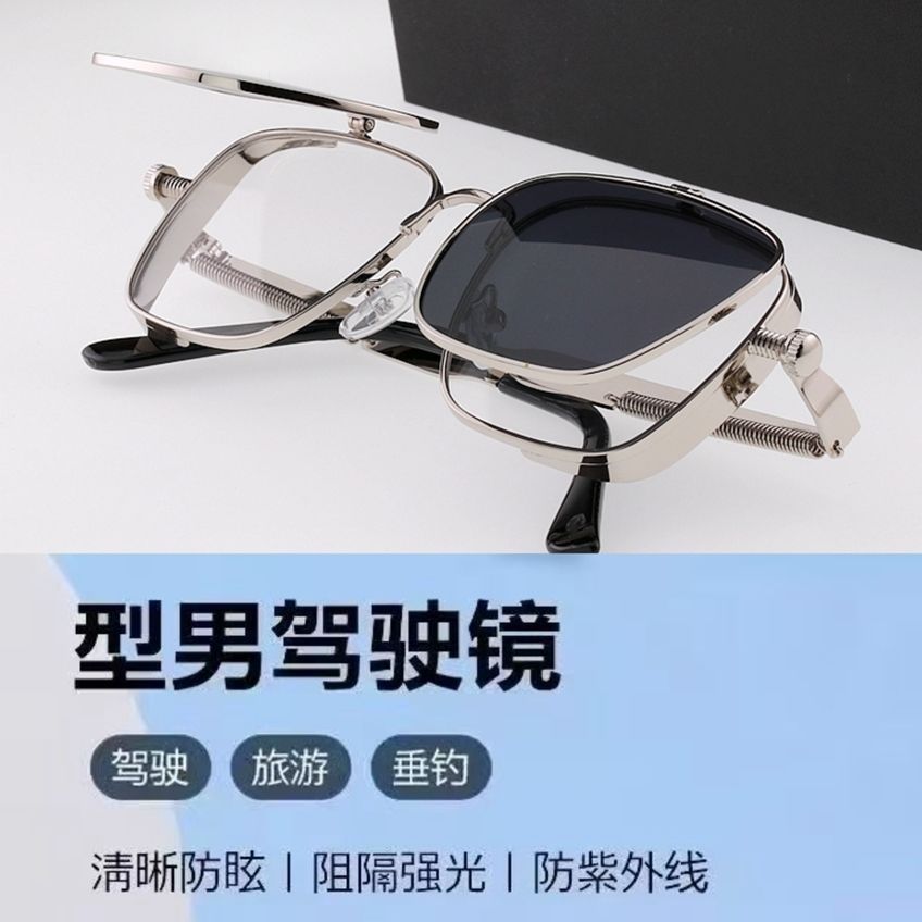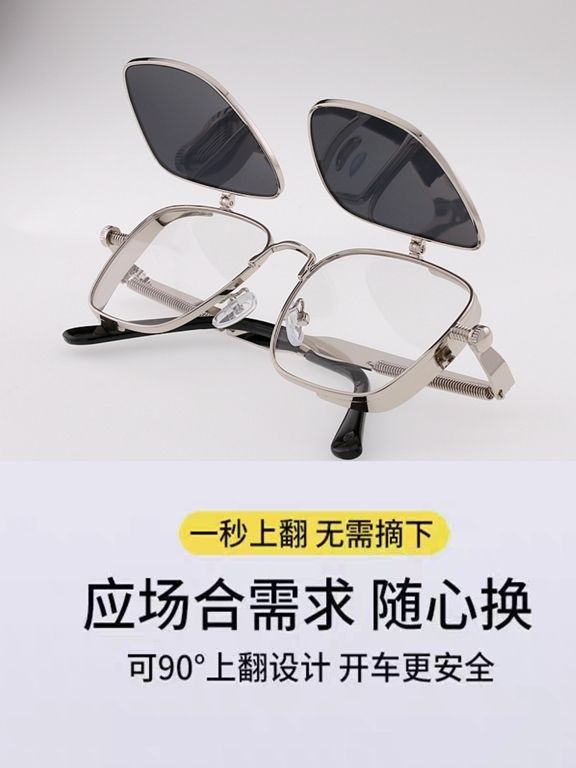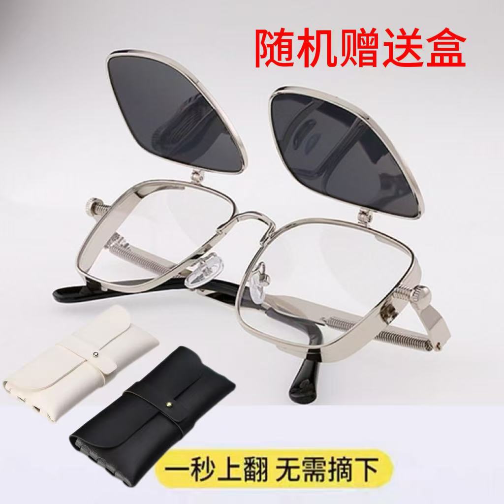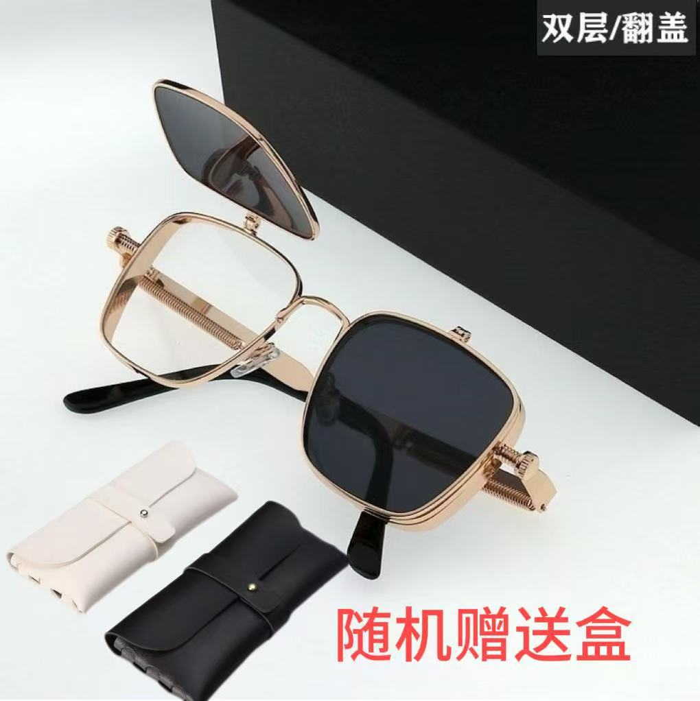 新款双层翻盖式太阳镜女方型框墨镜男个性弹簧上下秒翻配镜框眼镜