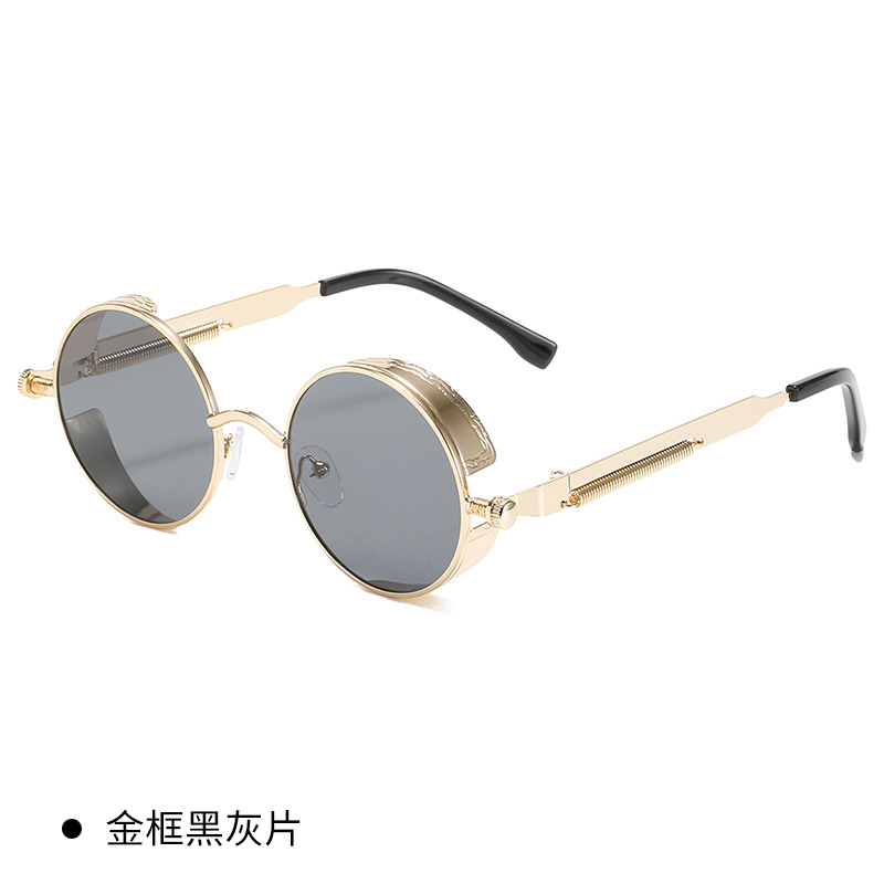 クロスボーダー新作ファッションラウンドスチームパンクサングラス男女レトロサングラススプリングミラー脚金属メガネ