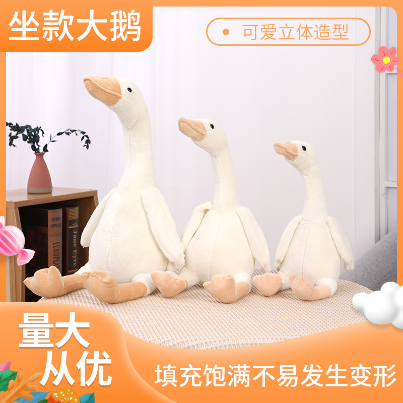 新しいガチョウの人形のぬいぐるみのアイデアは白鳥のぬいぐるみの子供の女の子が枕のぬいぐるみをなだめることをシミュレートします