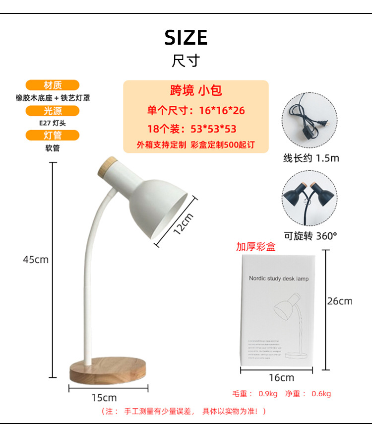 北欧シンプル現代電気スタンドled保護デスク大学生寮読書ベッドサイドins風電気スタンドクロスボーダー