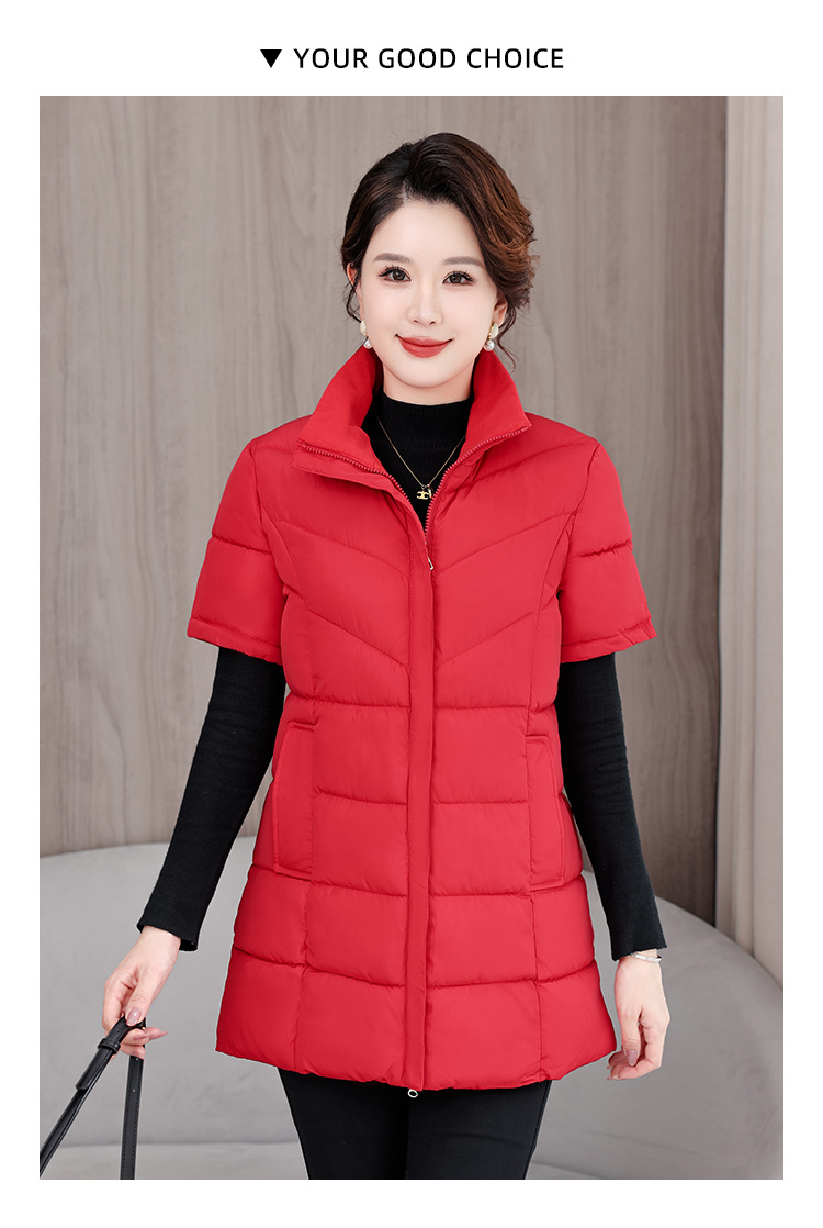 秋冬羽绒棉马甲女中长款背心坎肩短袖马夹棉衣保暖棉服2025新款