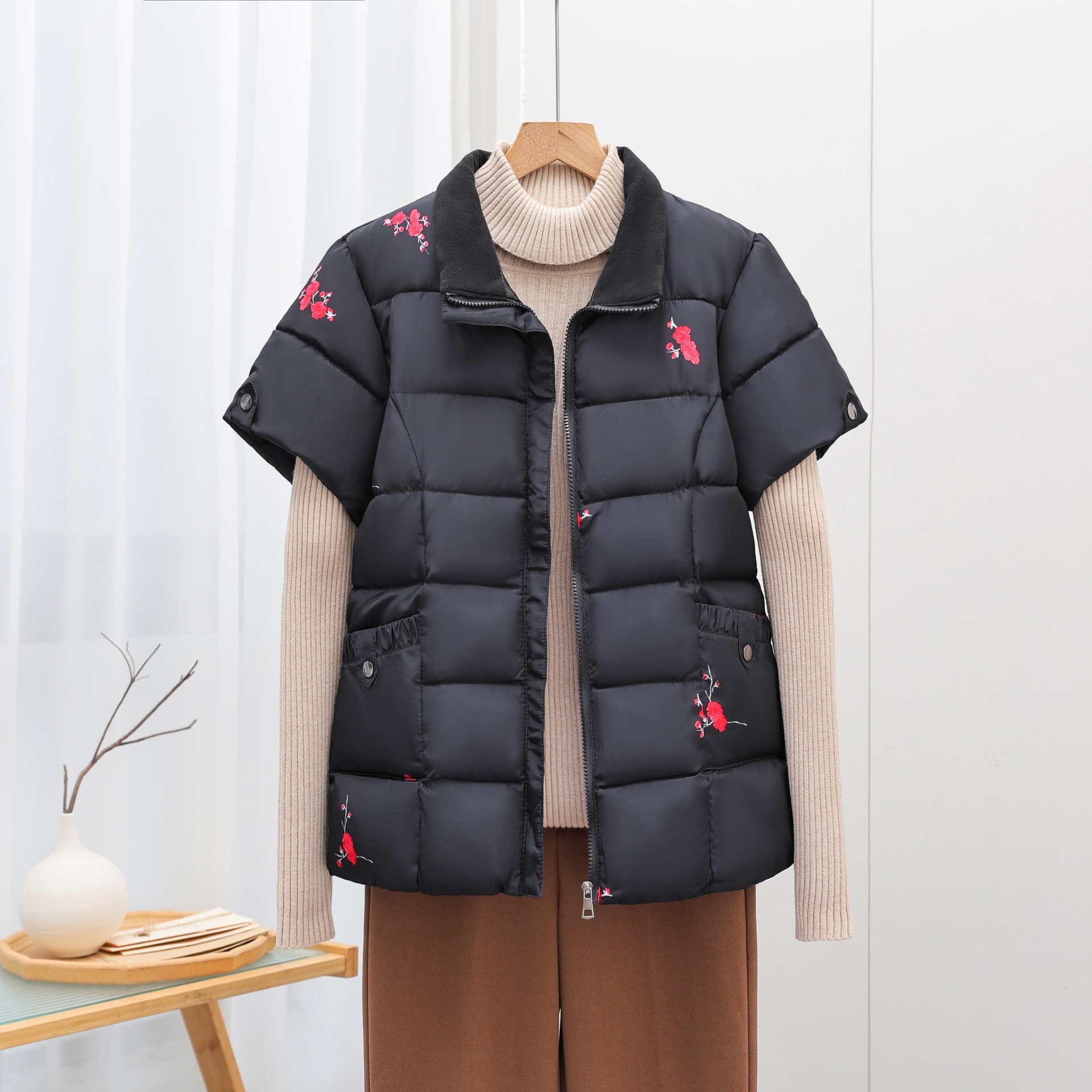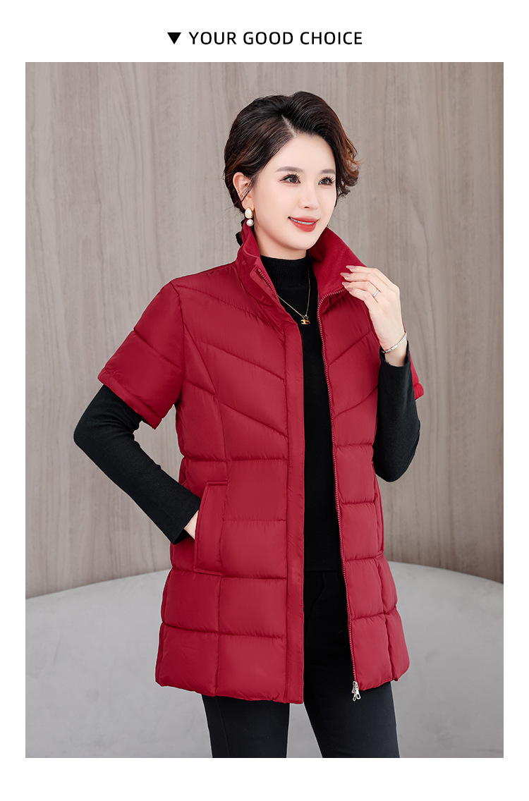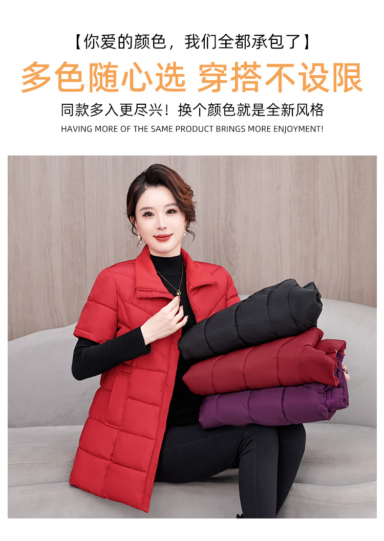 中老年羽绒棉半袖棉服马甲女外穿短款秋冬背心2025年新款加厚外套