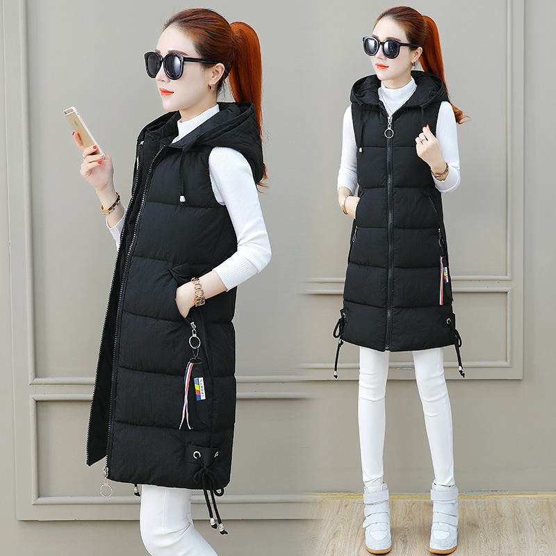 长款女式棉马甲女秋冬中长韩版连帽羽绒棉背心大码加厚坎肩外套