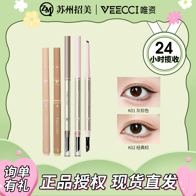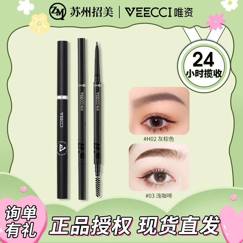 VEECCI/唯资斜切细致先锋眉笔持久上色双头眉笔顺滑不易晕染眉粉
