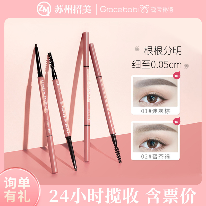 Gracebabi/瑰宝秘语005极细眉笔持久不易脱色初学者超细双头眉笔