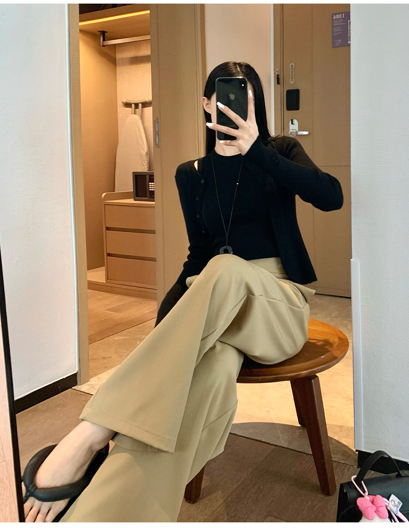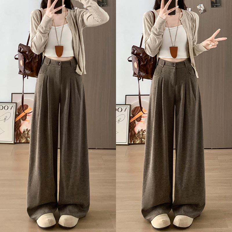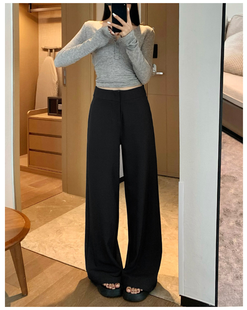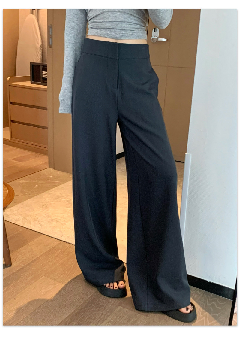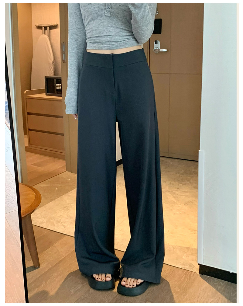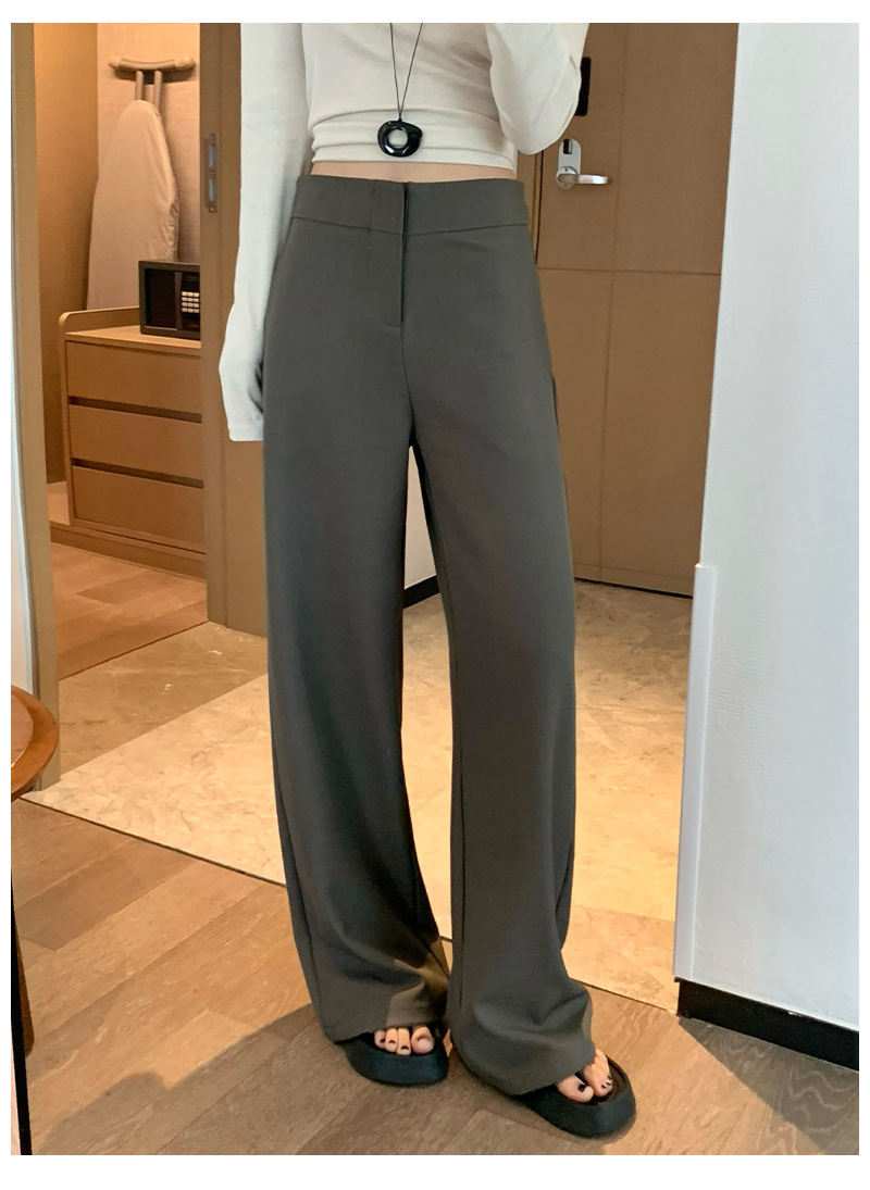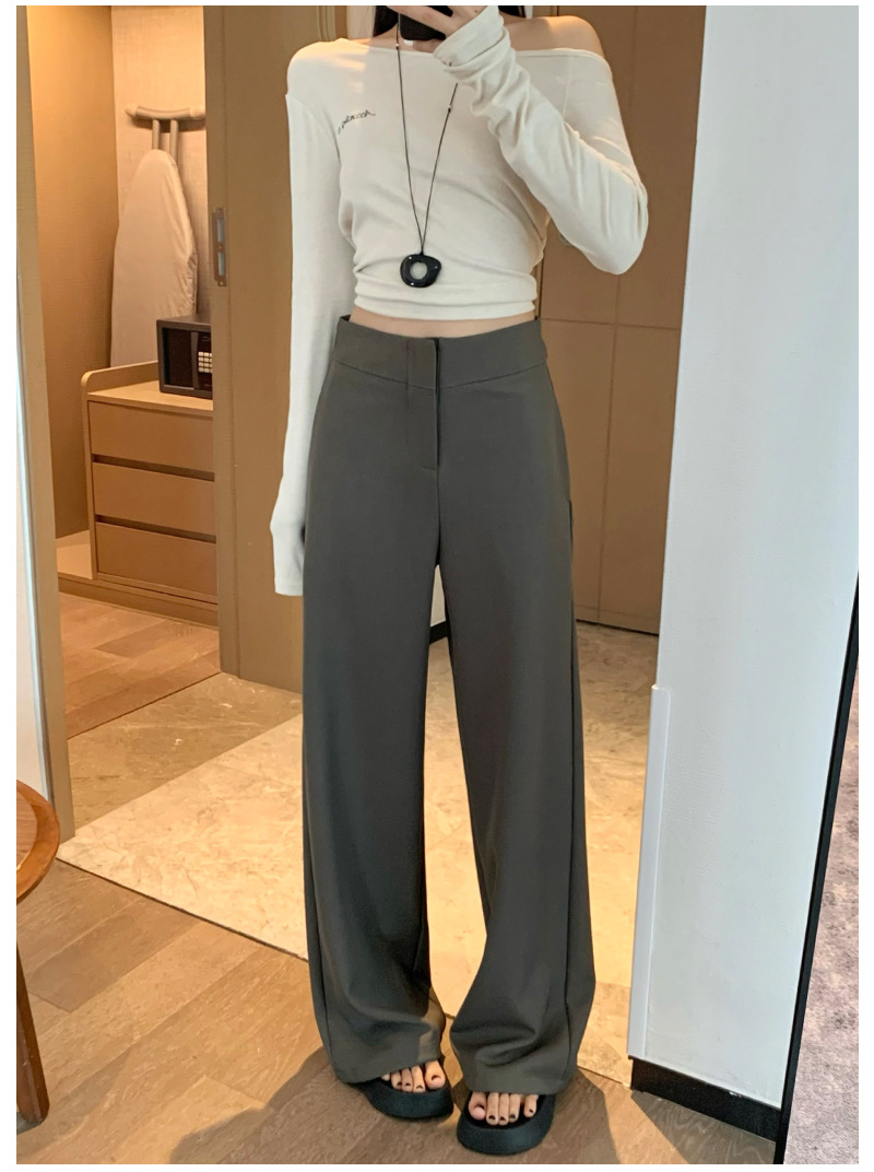 韩系慵懒松弛感糯米西装裤女春秋高腰显瘦宽松垂感直筒休闲阔腿裤