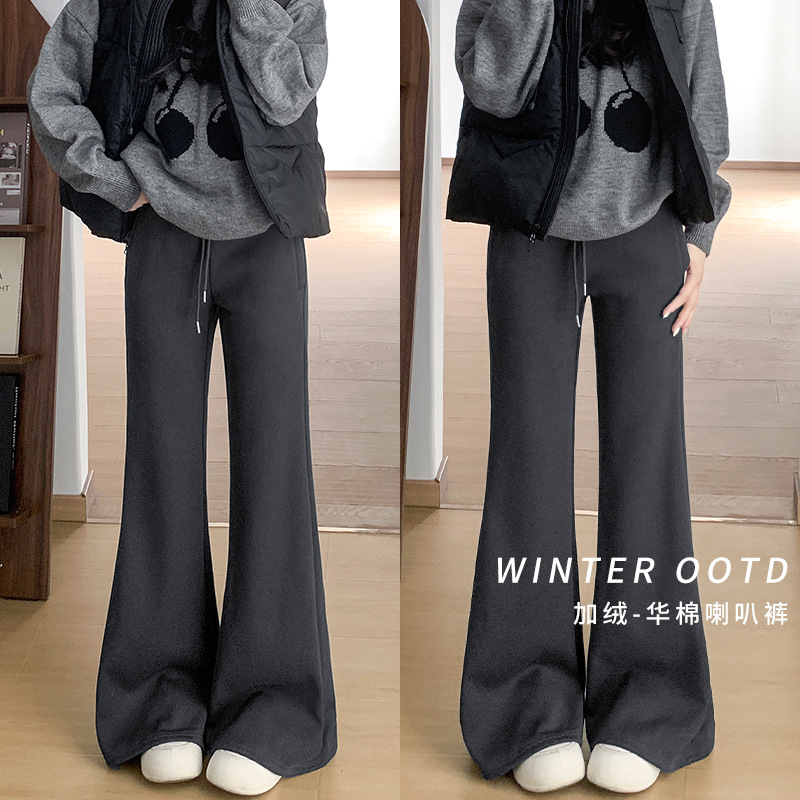 美式辣妹微喇裤女秋冬螺纹高腰加绒喇叭卫裤修身显瘦垂感运动裤子