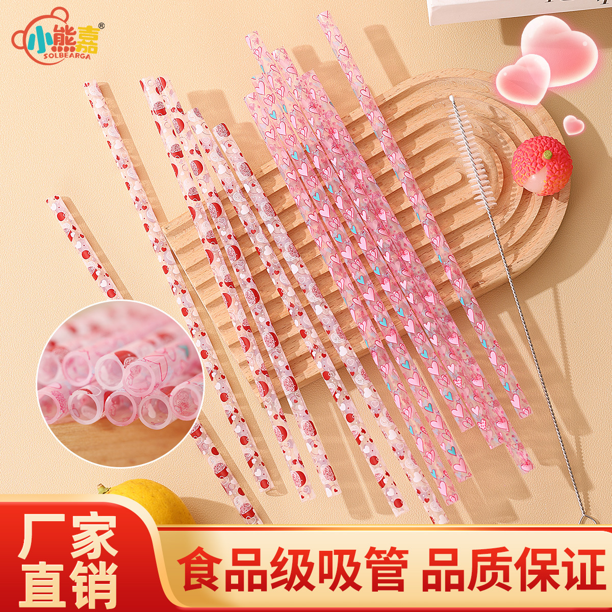 ホットセールバレンタインデープリントストロー、ラブストロー、環境に優しいクリエイティブなリサイクル可能なマルチ仕様プラスチックストロー
