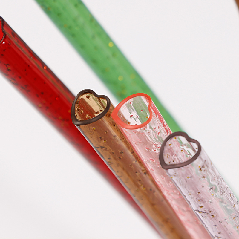 蝶結びのガラスストローの創意的な形は花にくっつきます。