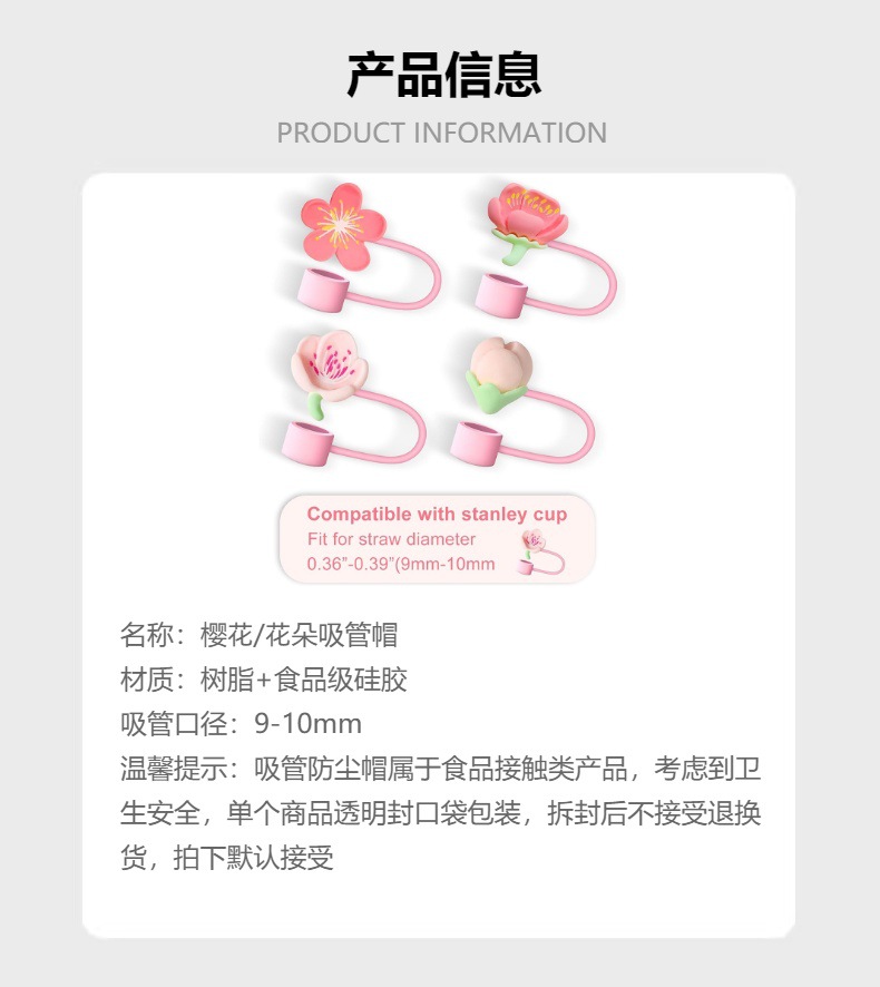 跨境新款樱花硅胶吸管套 玻璃吸管帽花朵系列吸管防尘塞