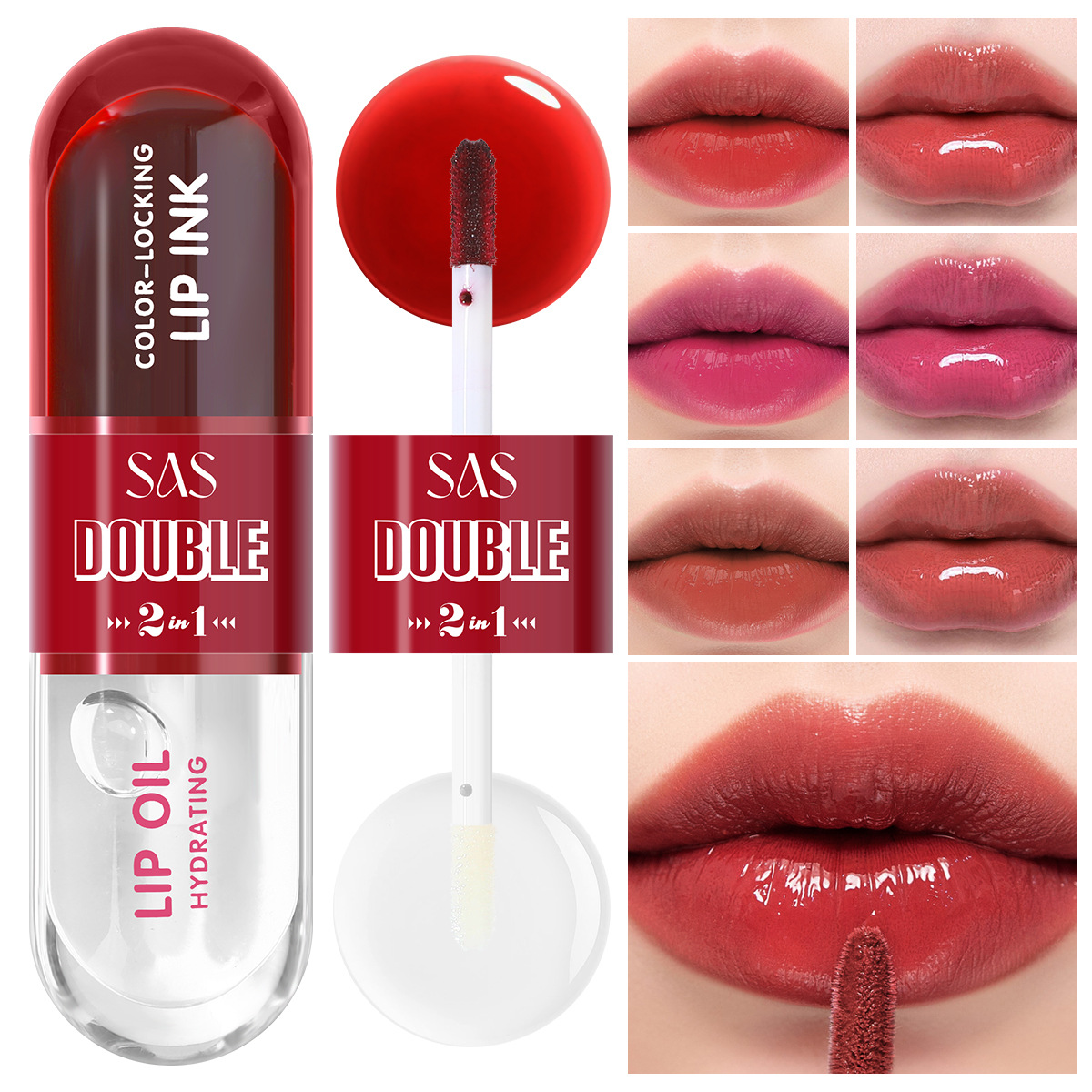 SAS欧美跨境现货持久不粘杯防水双头液体口红水+唇油SLG007