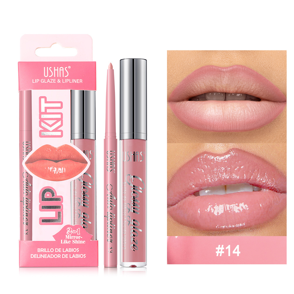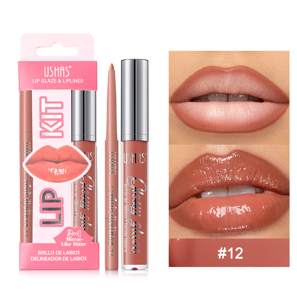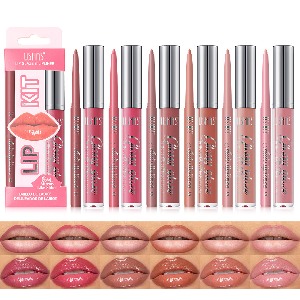 USHAS爆款热卖唇釉+唇线笔跨境唇彩口红持久唇釉UCS003
