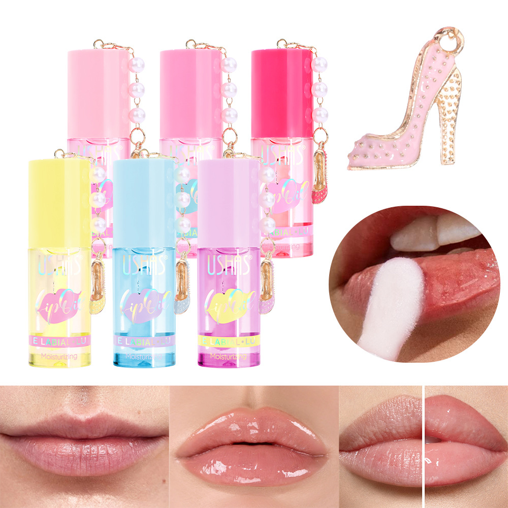 USHAS跨境现货爆款亚马逊防水滋润保湿唇油+吊坠