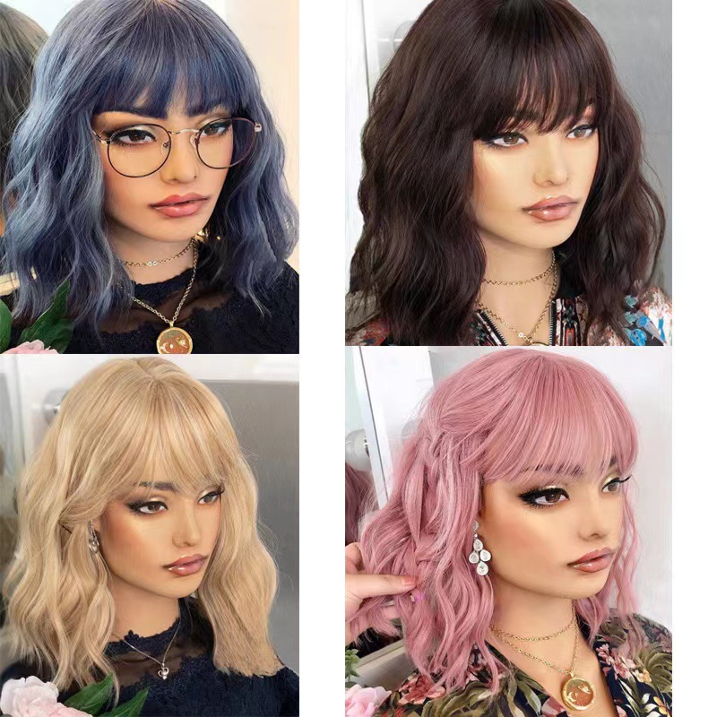 国境を越えた欧米の短いカールの水の波紋と劉海の短いカールのかつらの化学繊維の高温糸のメーカーの現物