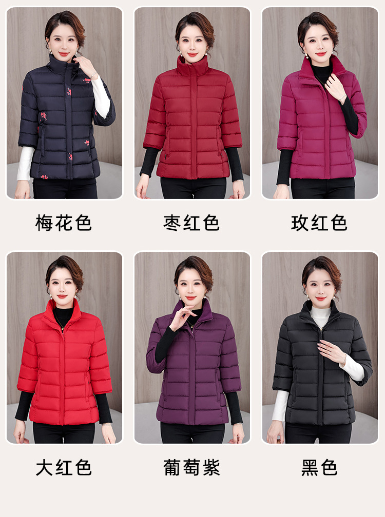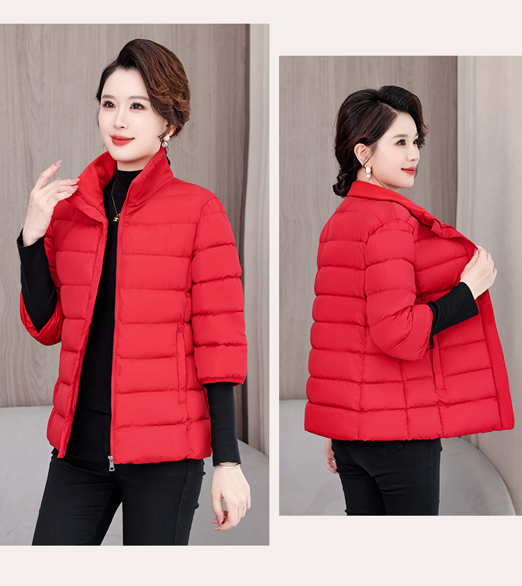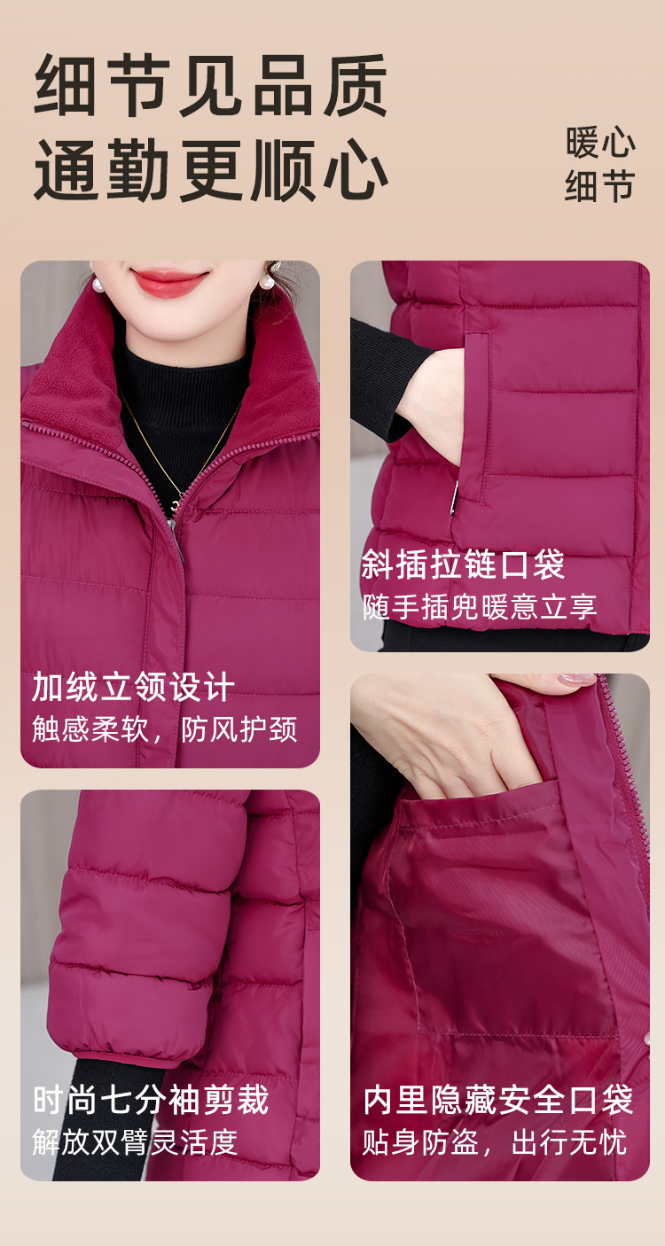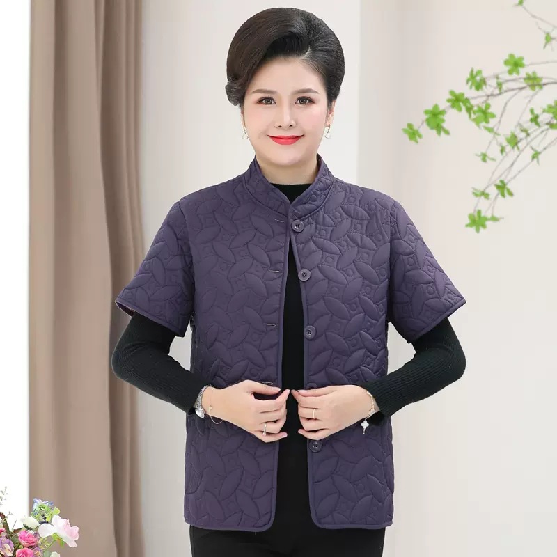 新款羽绒棉马甲女短款半袖中老年棉服七分袖背心外套秋冬妈妈外套