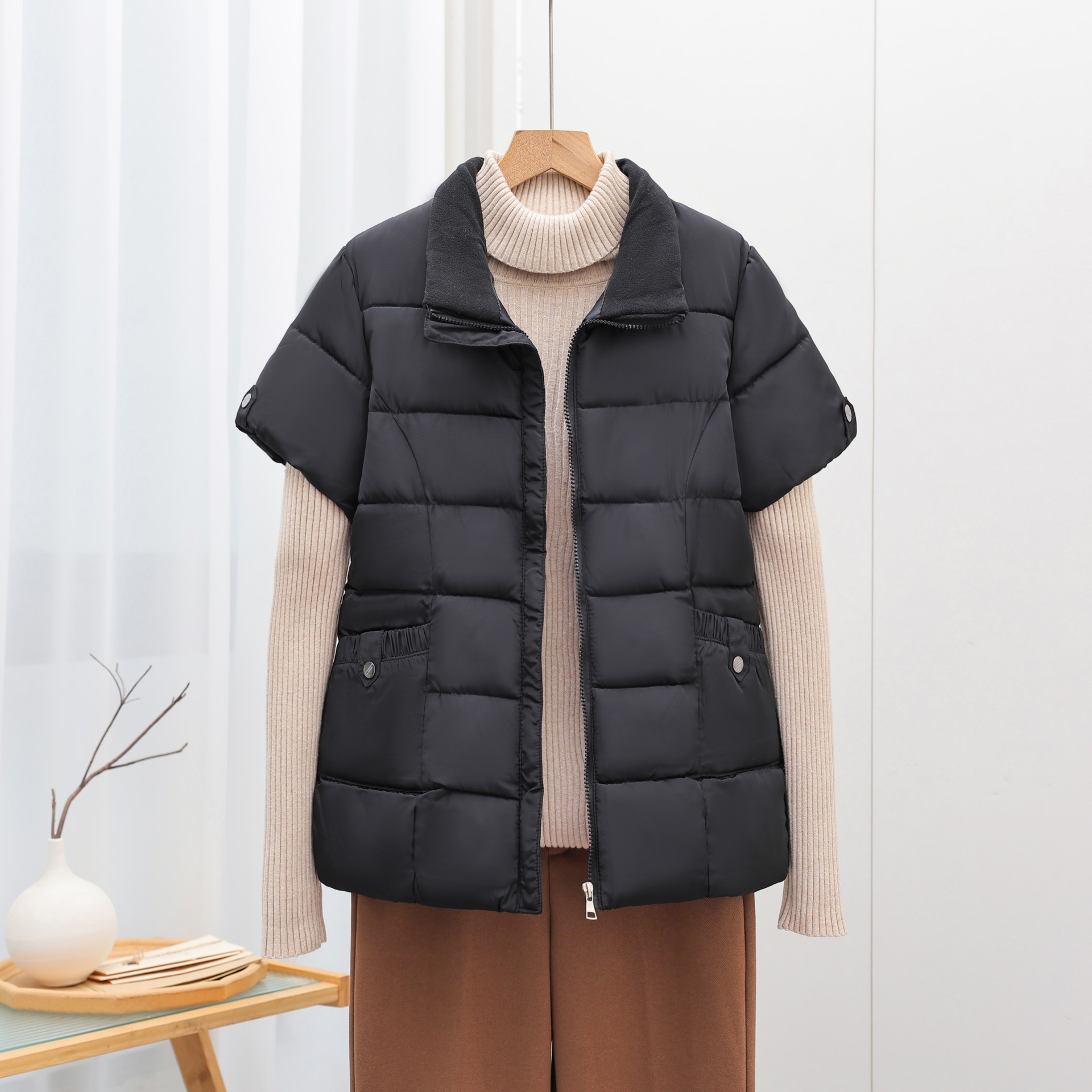 秋冬半袖棉马甲女羽绒棉衣2025新款短袖外套带袖棉服保暖外穿坎肩