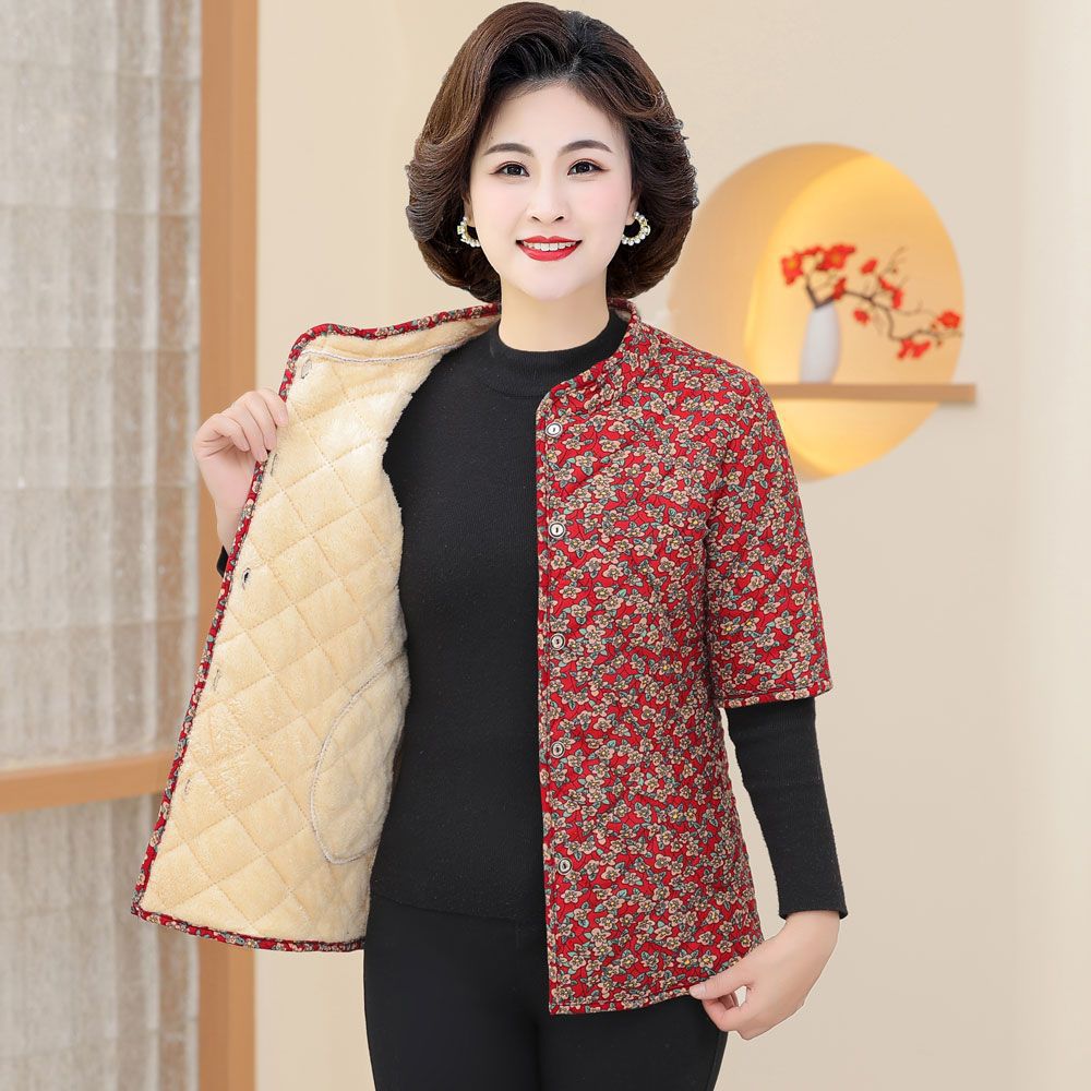 妈妈带袖坎肩秋冬装加厚半袖棉衣中老年人女奶奶大码棉服碎花马甲