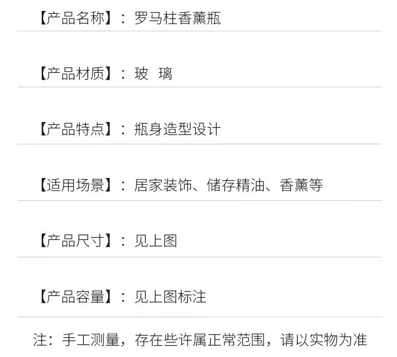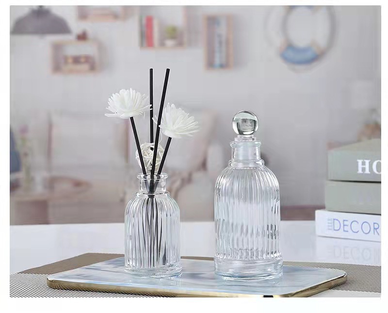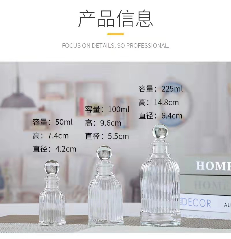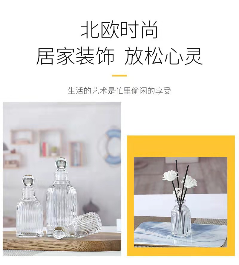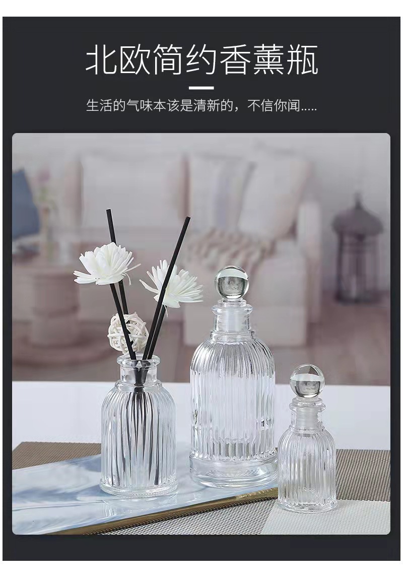 现货罗马香熏瓶透明玻璃瓶无火竖纹扩香瓶客厅室内家居摆件分装瓶
