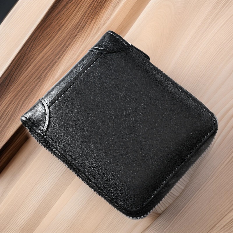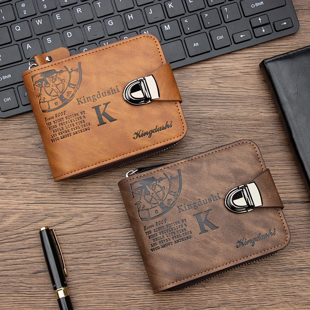 新款复古插锁扣短款男士钱包商务大容量多卡位钱夹拉链零钱包卡包