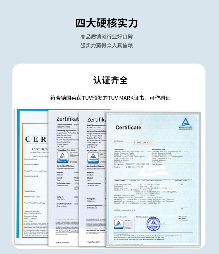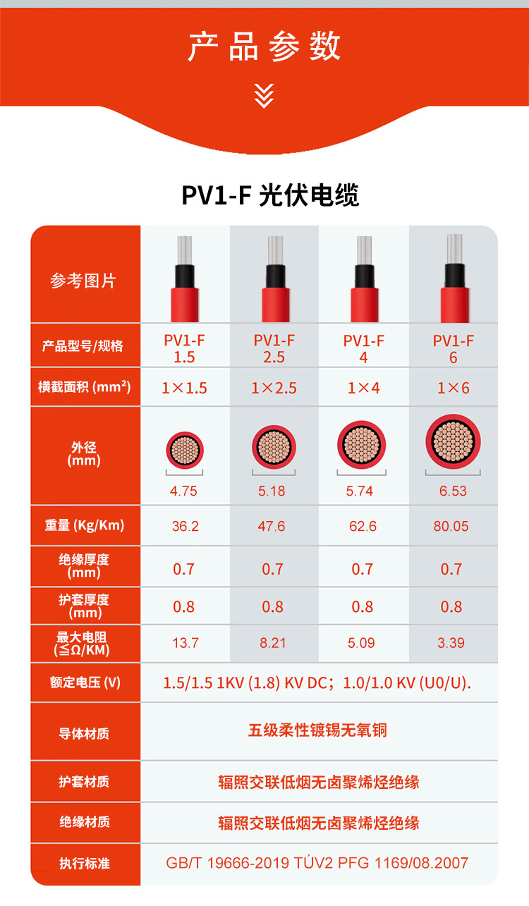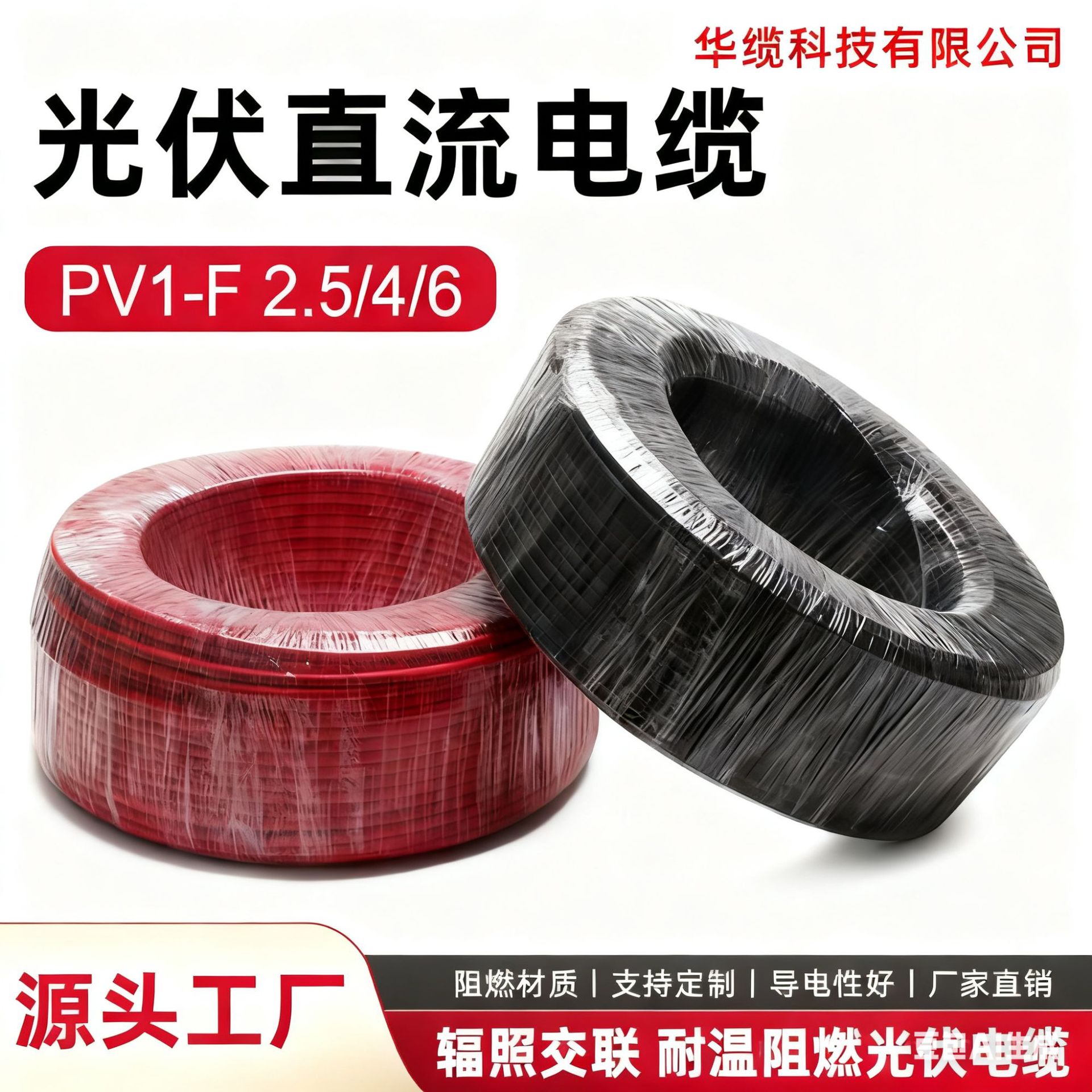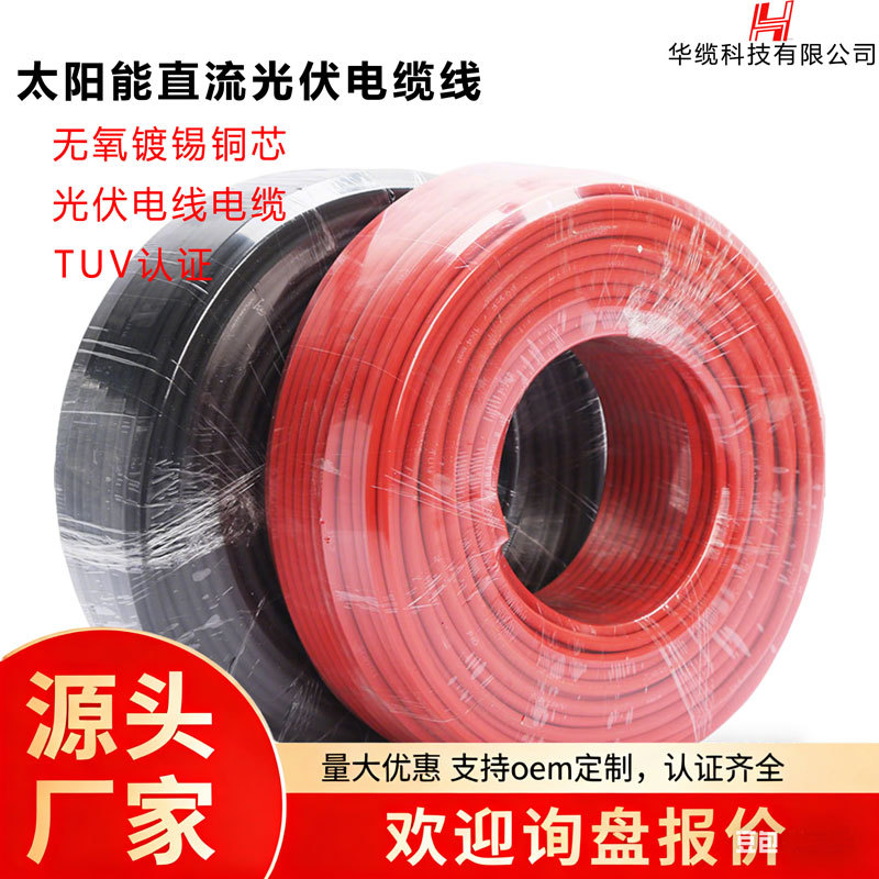 PV1太阳能直流光伏线4平方TUV认证国标辐照阻燃耐高温光伏电缆