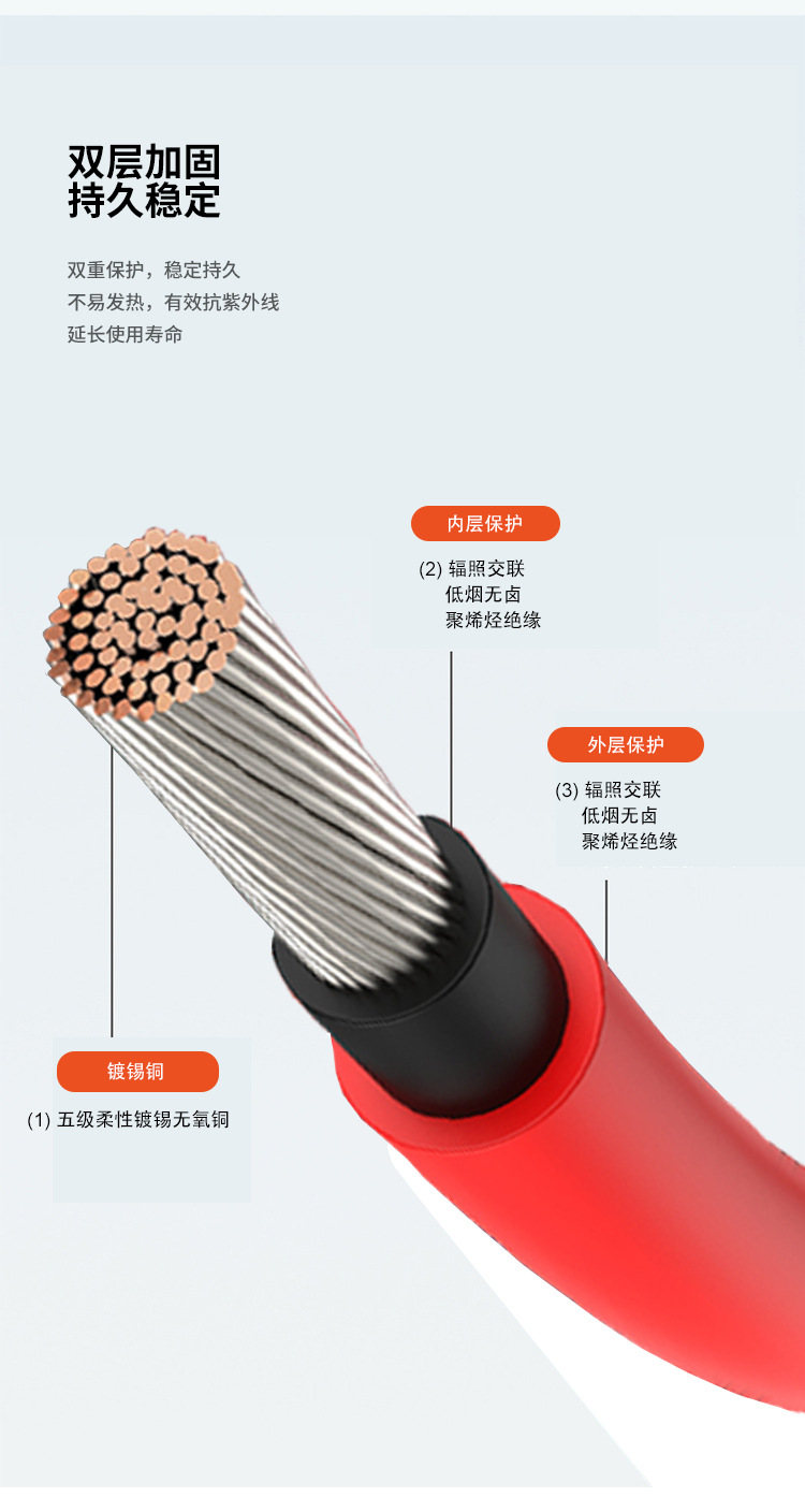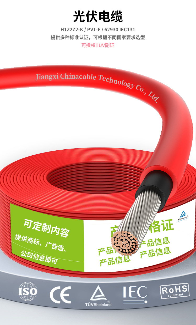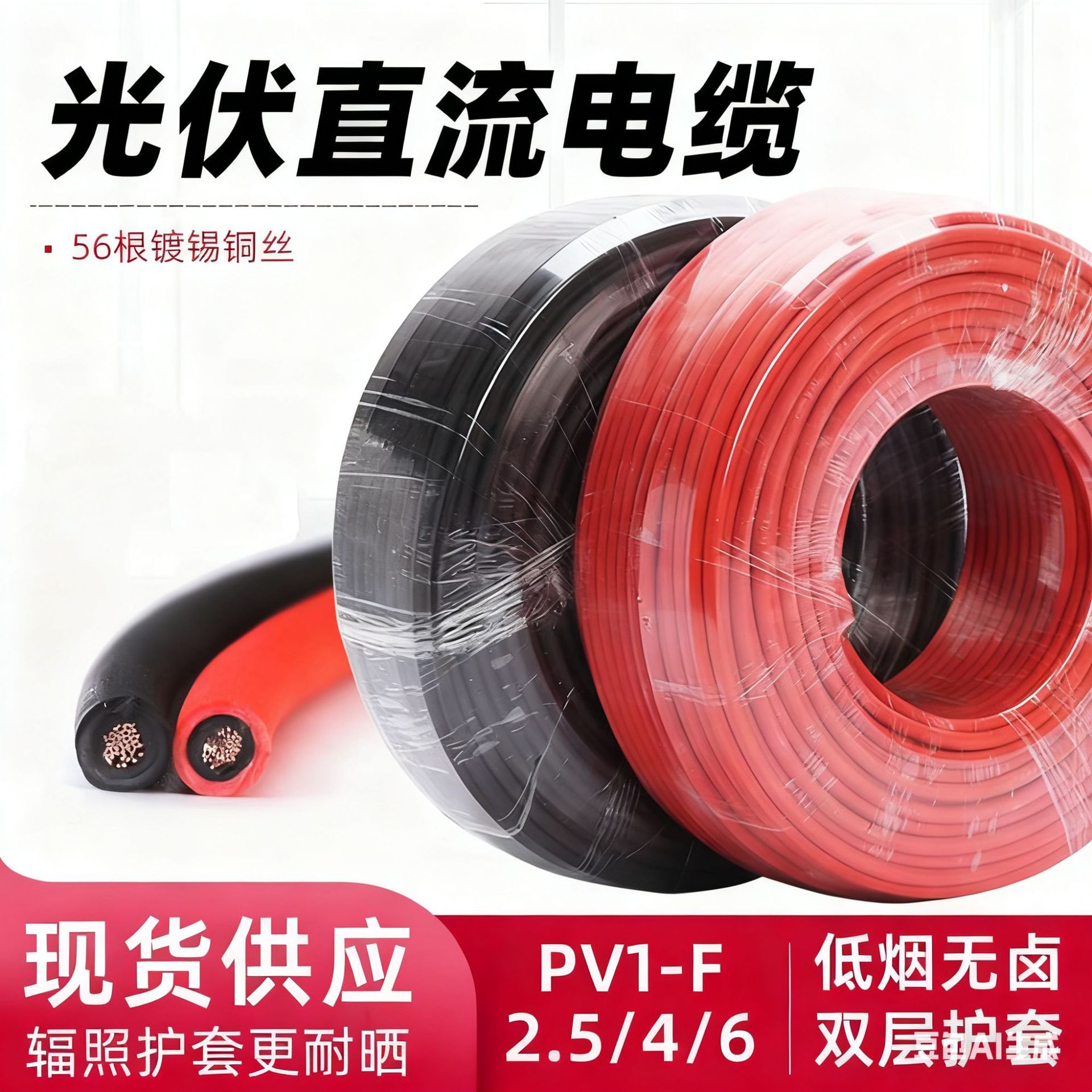 光伏电缆PV1-F 2/4/6平方直流电线电缆TUV认证太阳能辐照防火电缆