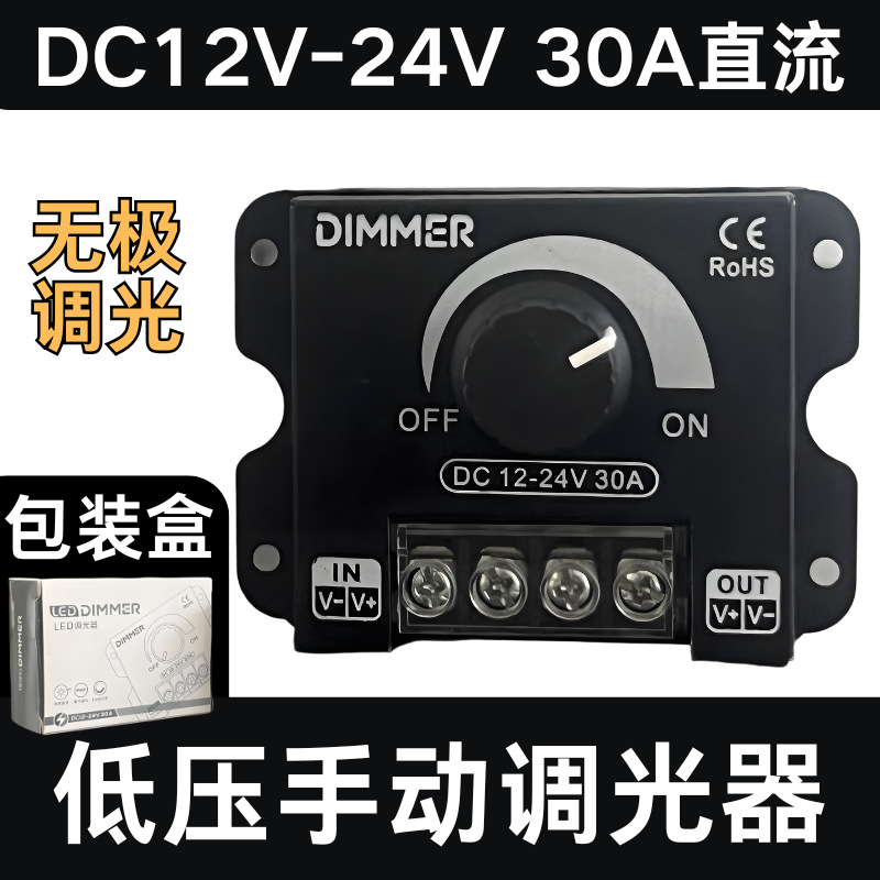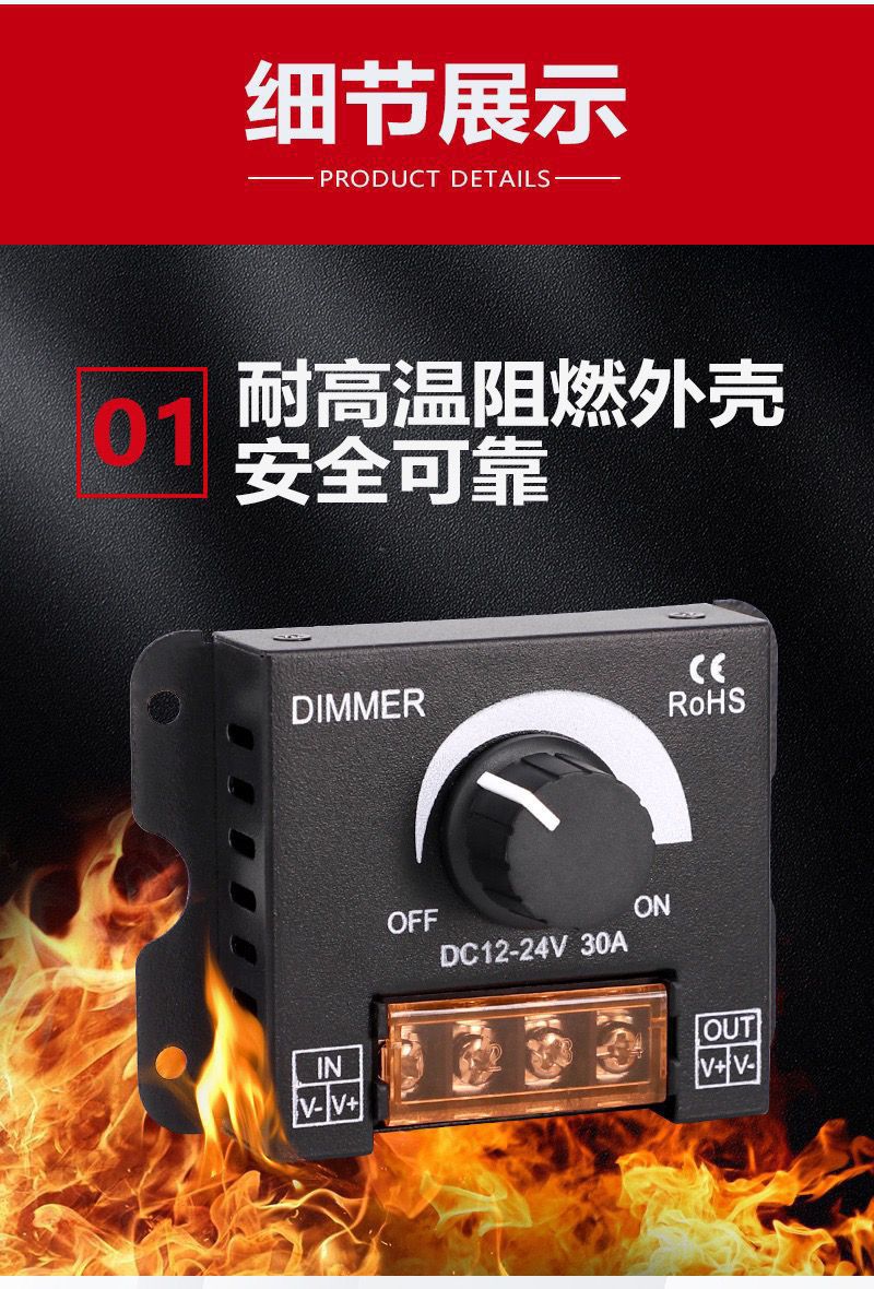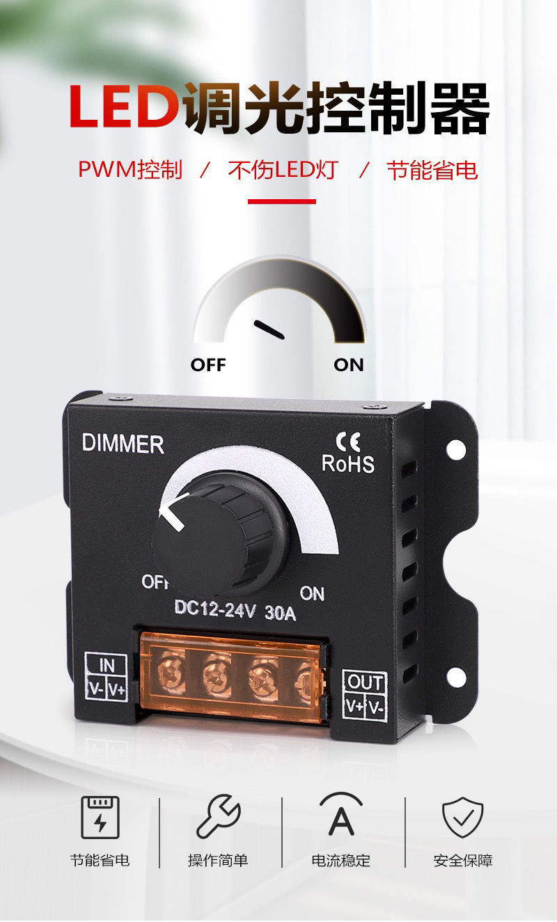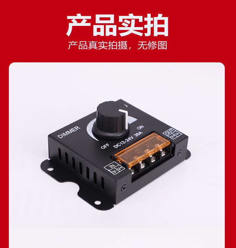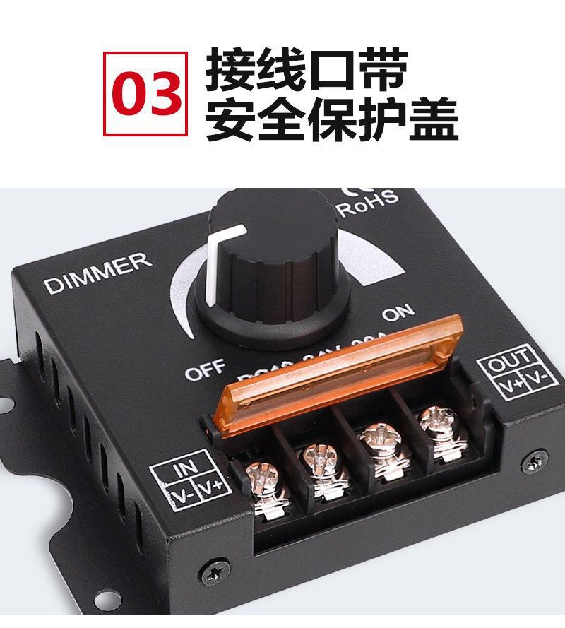 LED低压灯带调光器 12V-24V单色30A旋钮控制器开关铁壳 手动调节
