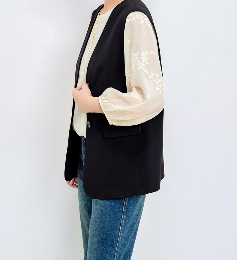 李子木先生马夹秋季新款西装马甲女v领小香风纯色感时尚