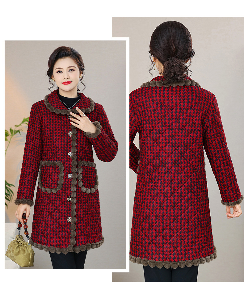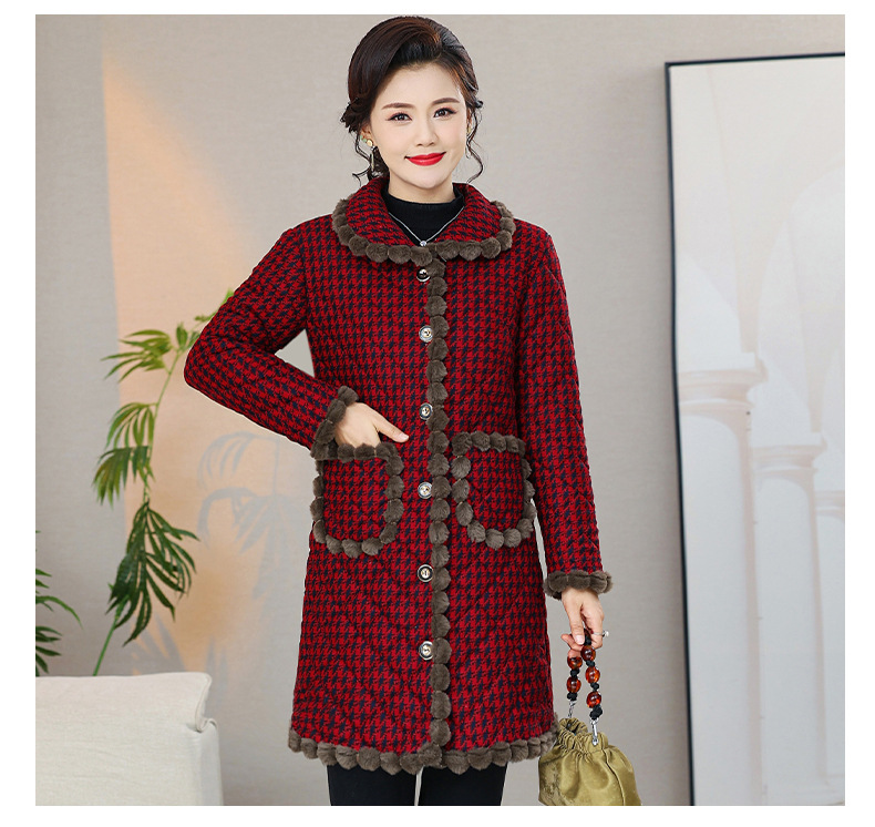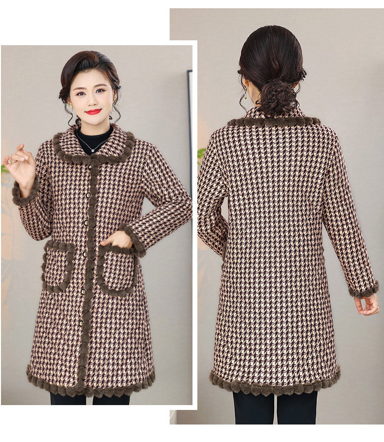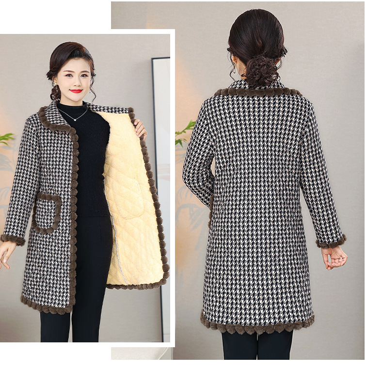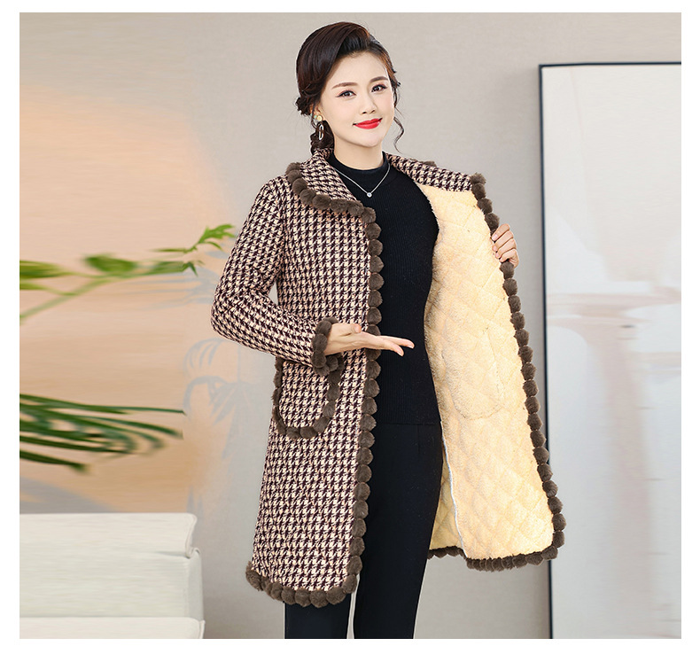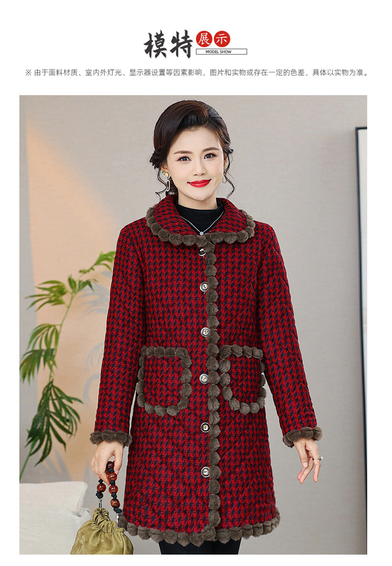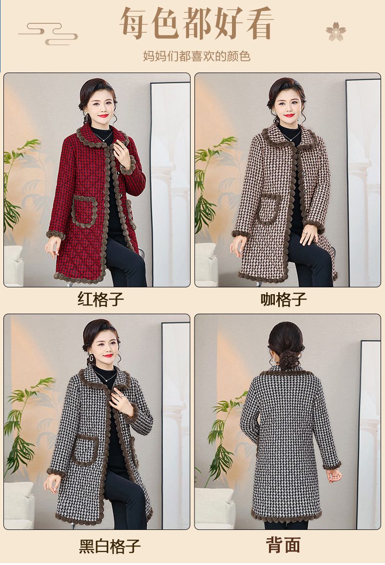 冬季新款妈妈洋气格子棉衣中长款加绒加厚外套中老年女装保暖棉服