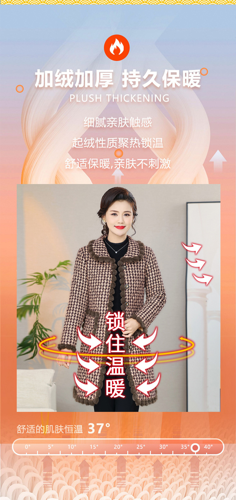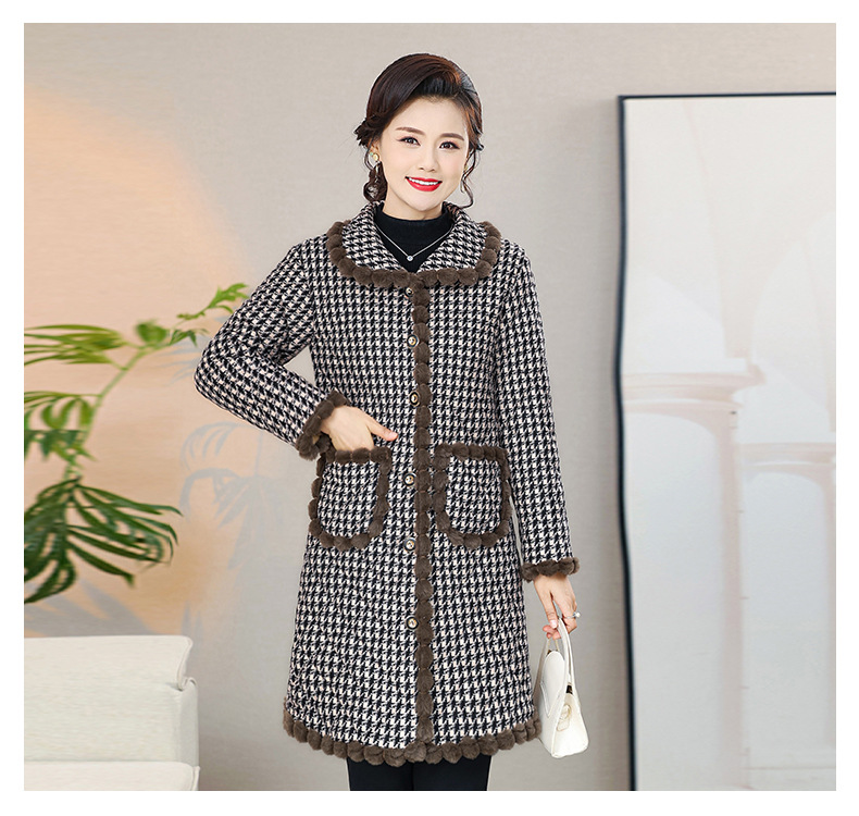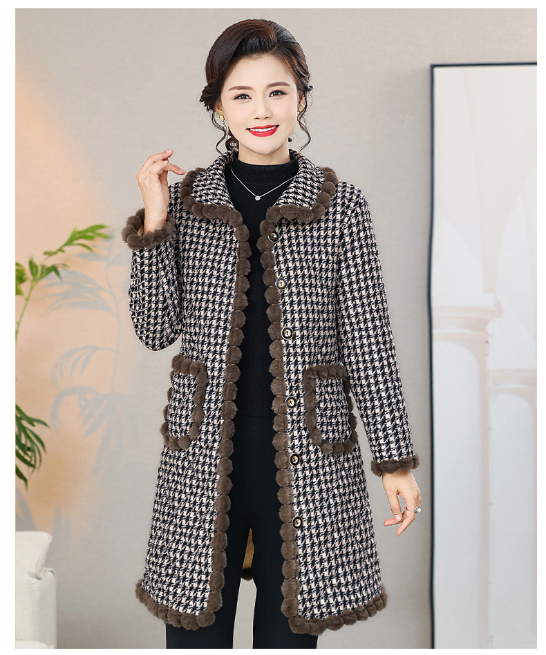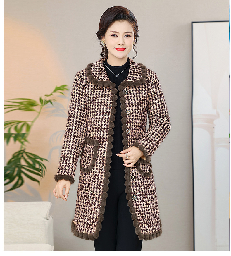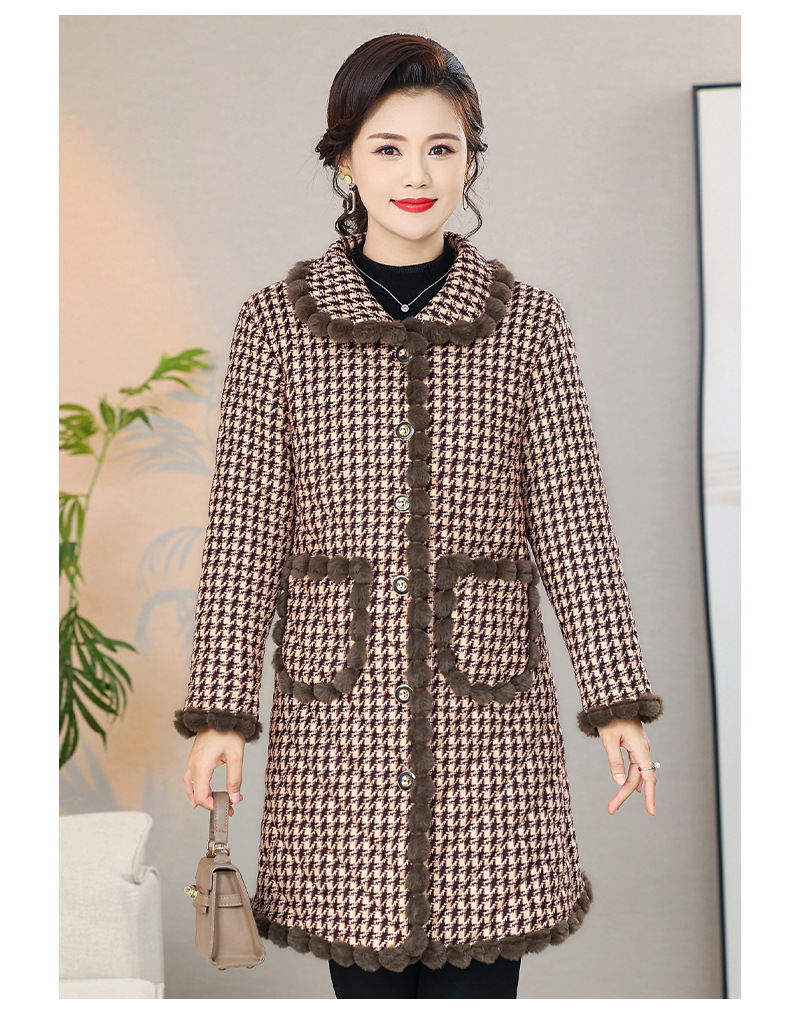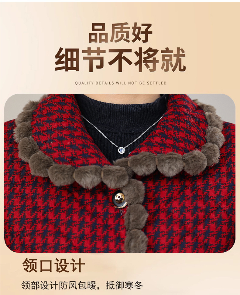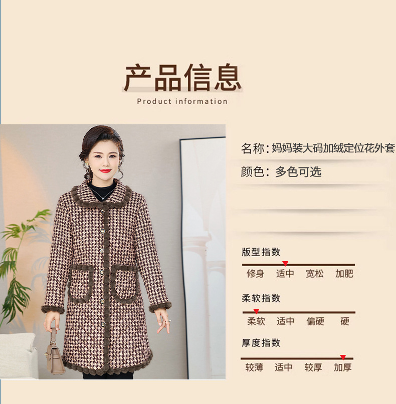 冬季新款妈妈洋气格子棉衣中长款加绒加厚外套中老年女装保暖棉服