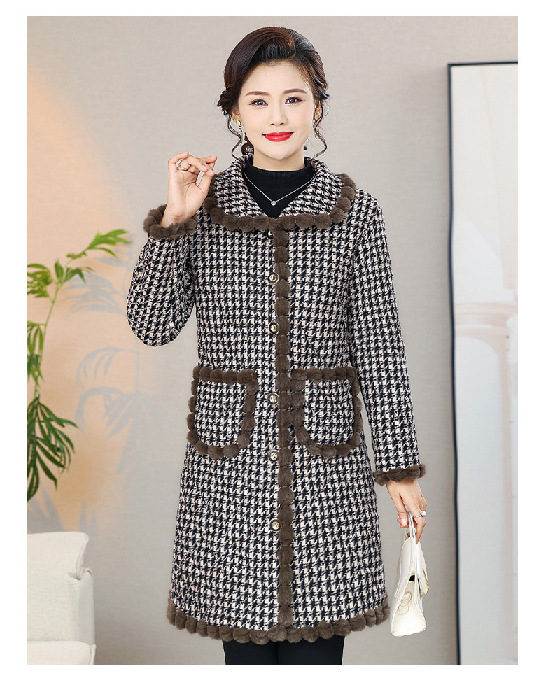 妈妈冬装中长款格子加绒棉衣外套中老年女装洋气翻领加厚保暖棉袄