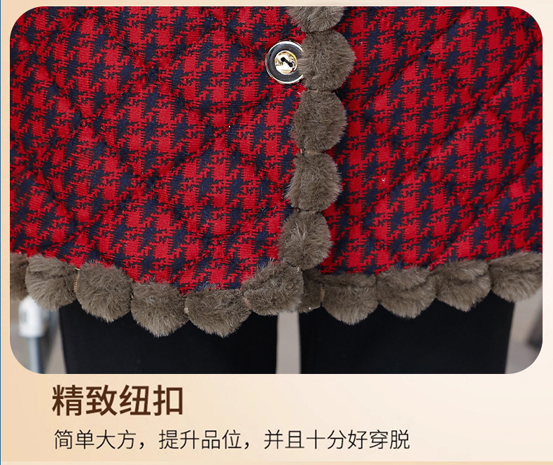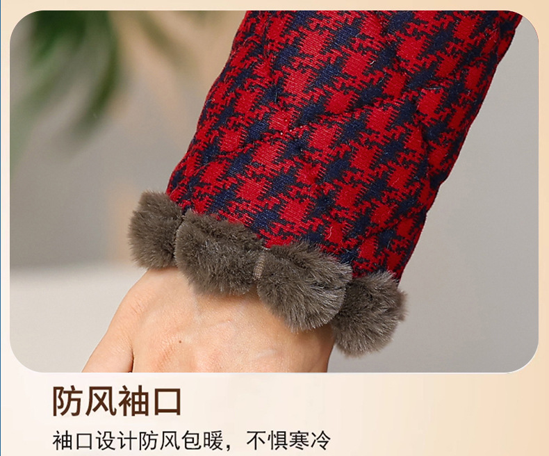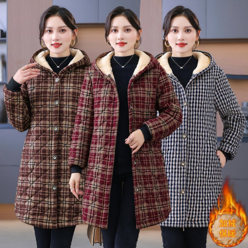 新款棉袄妈妈中老年保暖连帽棉衣棉服中长款洋气加绒加厚外套格子