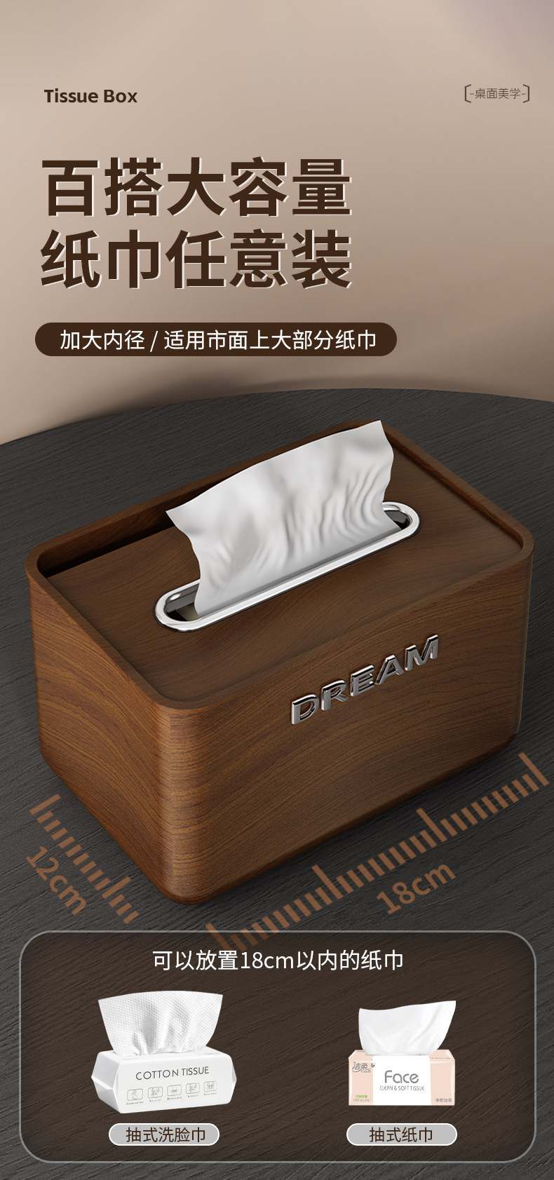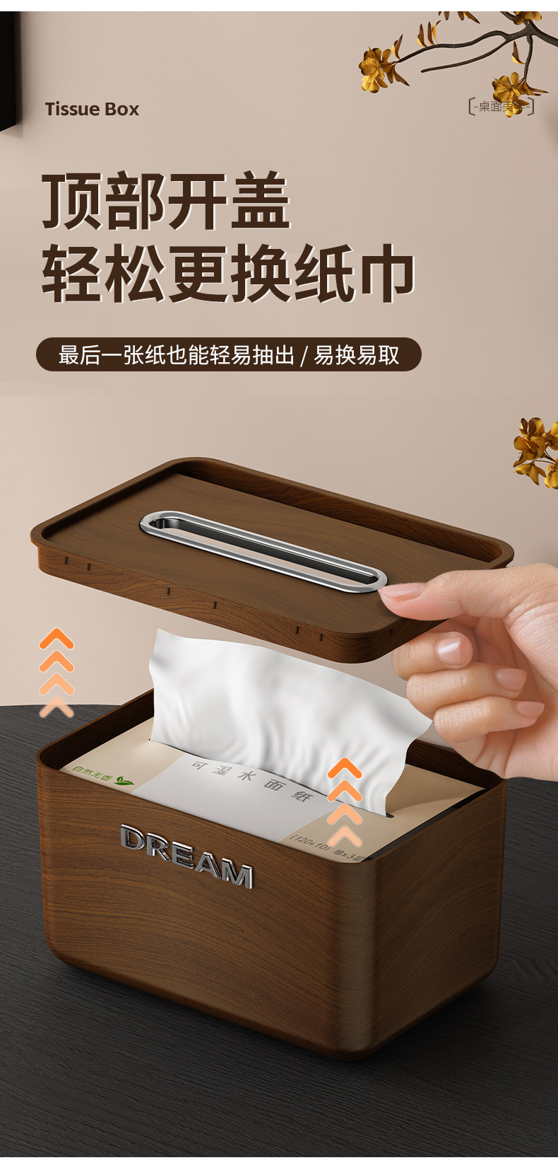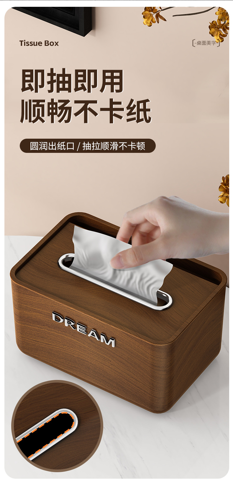 颜色 胡桃木纹纸巾盒