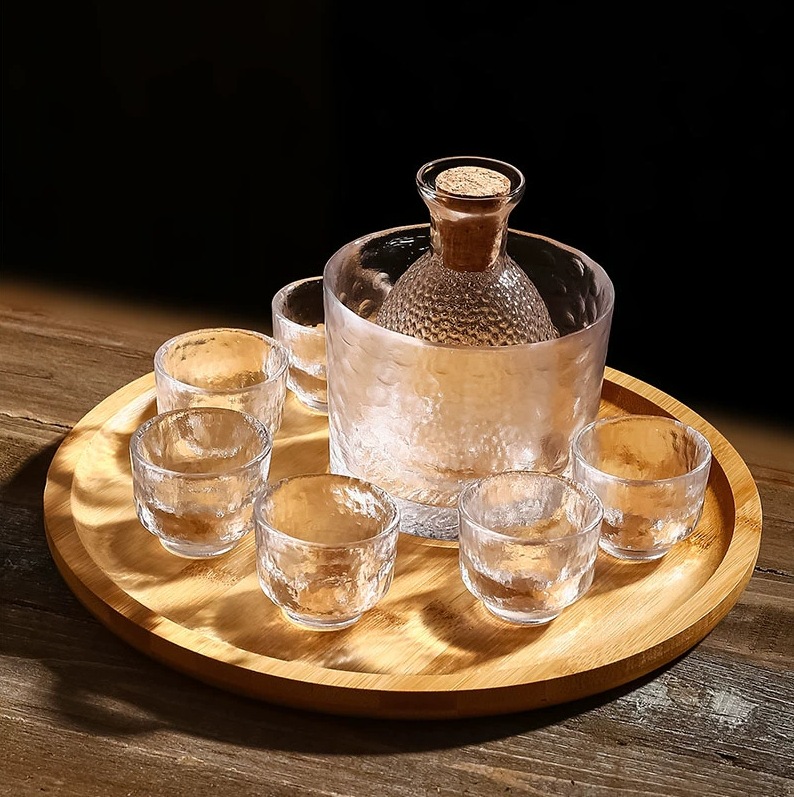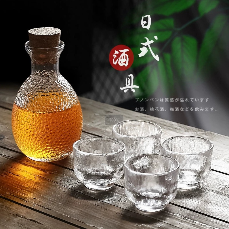 日本式ハンマーグラス酒具清酒壷清杯ガラス小杯家庭用白杯温酒壷セット