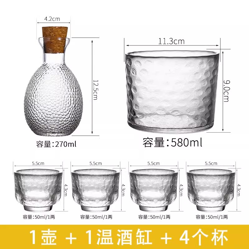 ハンマーグラス日本式酒具清酒壷清杯ガラス小杯家庭用白杯セット温酒壷