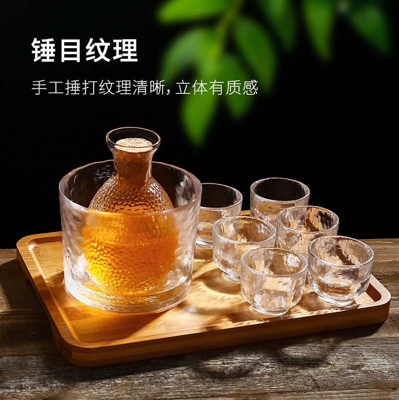 ins风日式温酒器套装锤纹玻璃烫酒壶家用黄酒杯创意玻璃杯