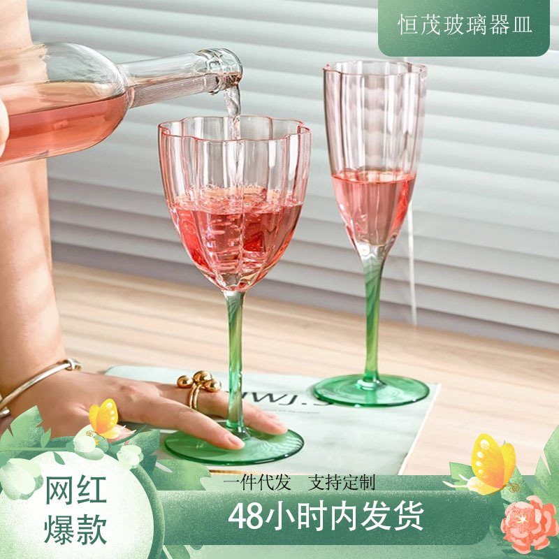 高颜値花びらワイングラス家庭用高足カップシャンパンカップ高級感白ワインカップお土産中古カップ